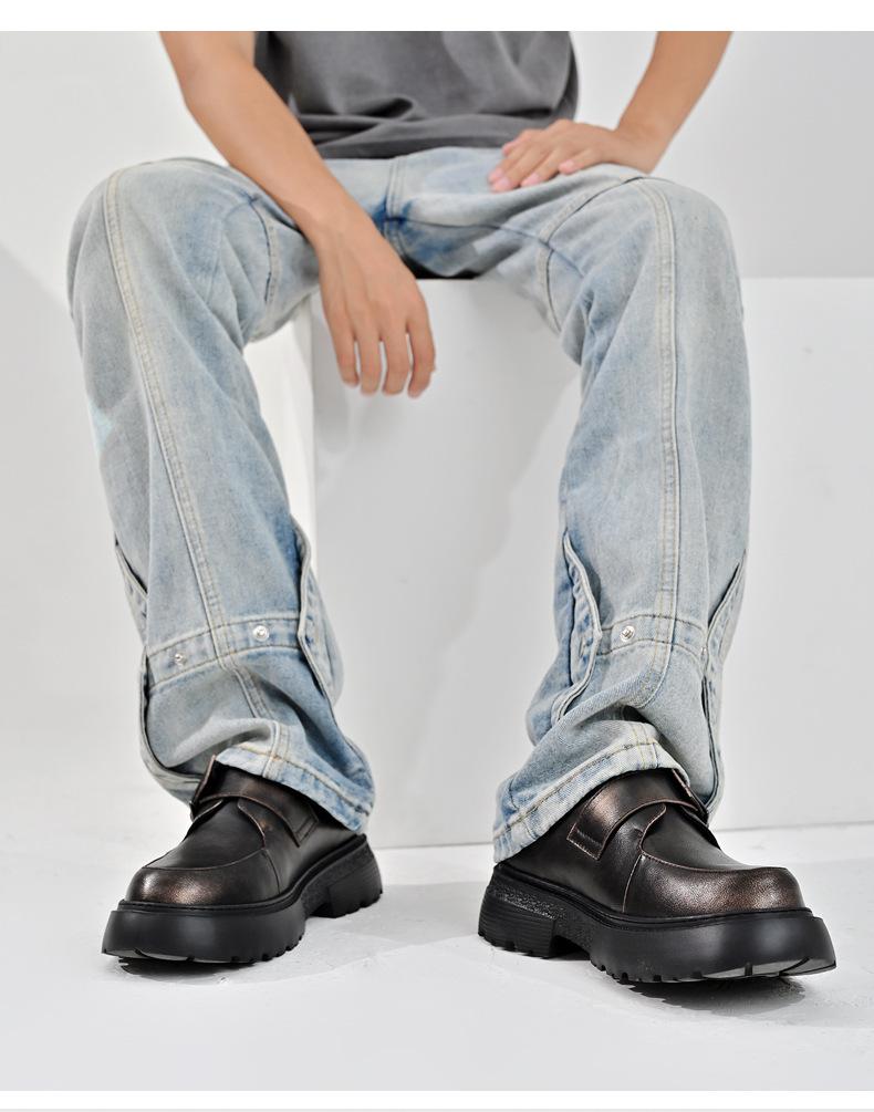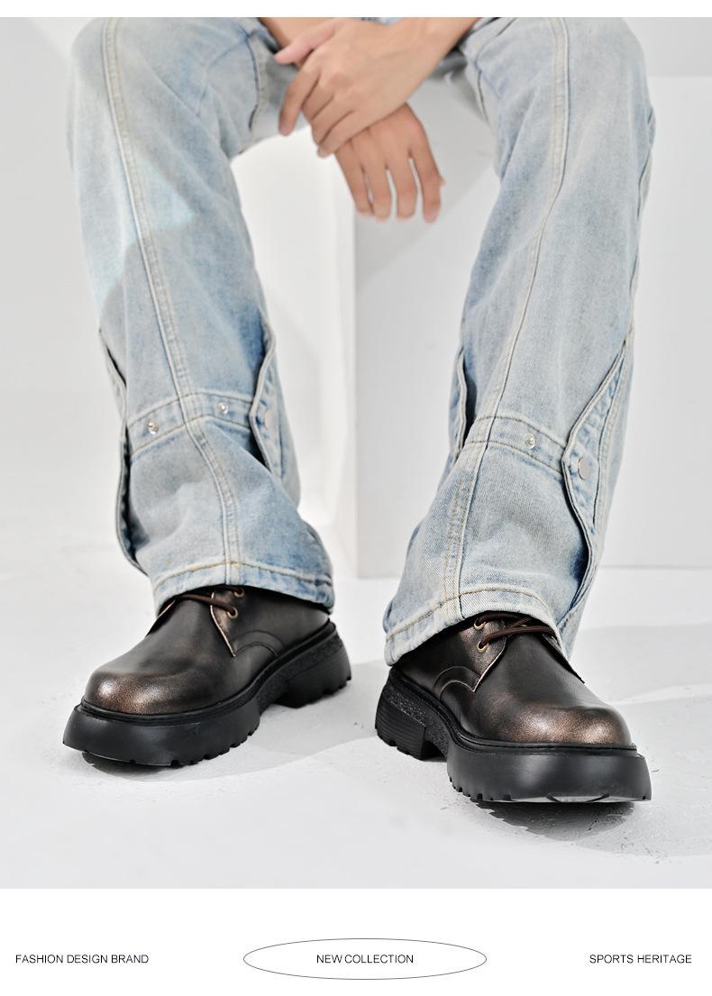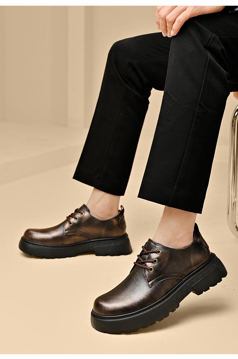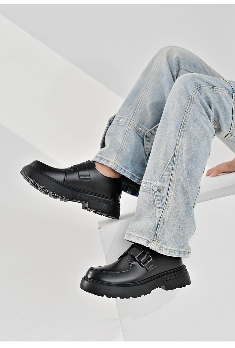 Zapatos para hombre, recién llegados en 2024, botas Martin de cuero genuino negro, de caña baja, combinables, estilo británico, zapatos casuales de cabeza grande, zapatos de moda.