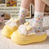Pantuflas de Algodón de Invierno para Mujer Nuevas Lindo Lazo Pantuflas de Algodón Fondo Grueso para el Hogar Cómodas Gruesas para Uso Exterior Pantuflas de Algodón