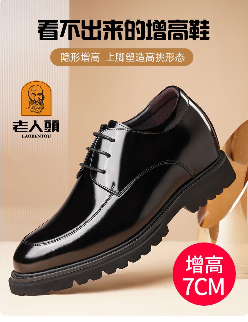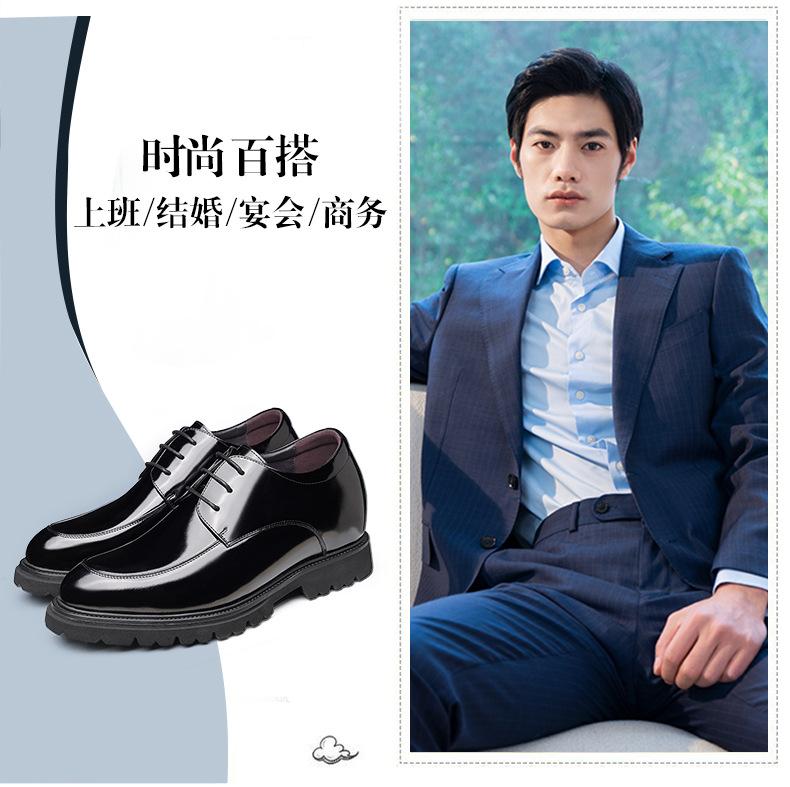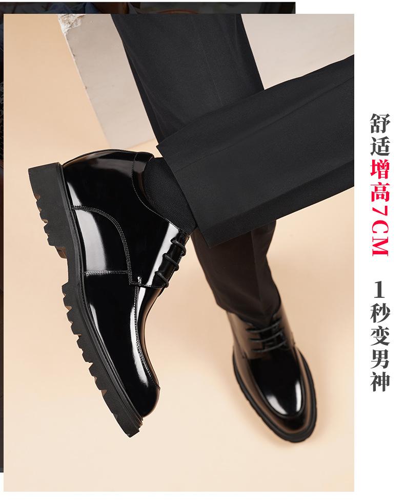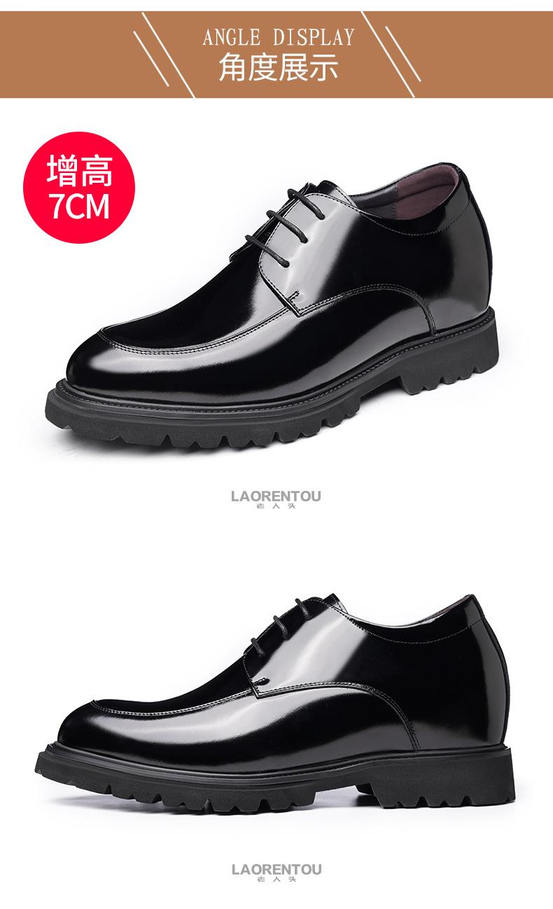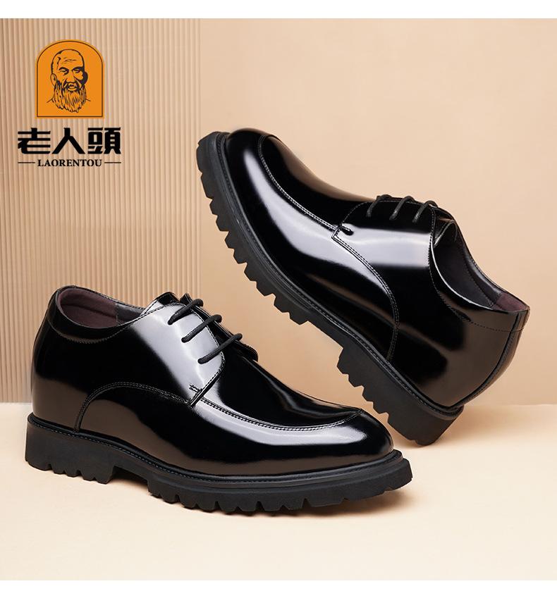 Zapatos Casuales de Cuero para Hombre Mayor, Mocasines Formales de Negocios de Cuero Genuino para Aumentar la Altura, Zapatos Brillantes Transpirables con Cordones para Hombre 72301