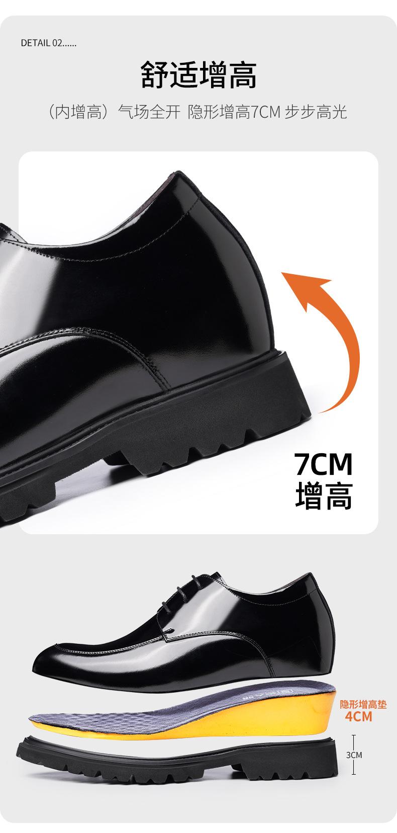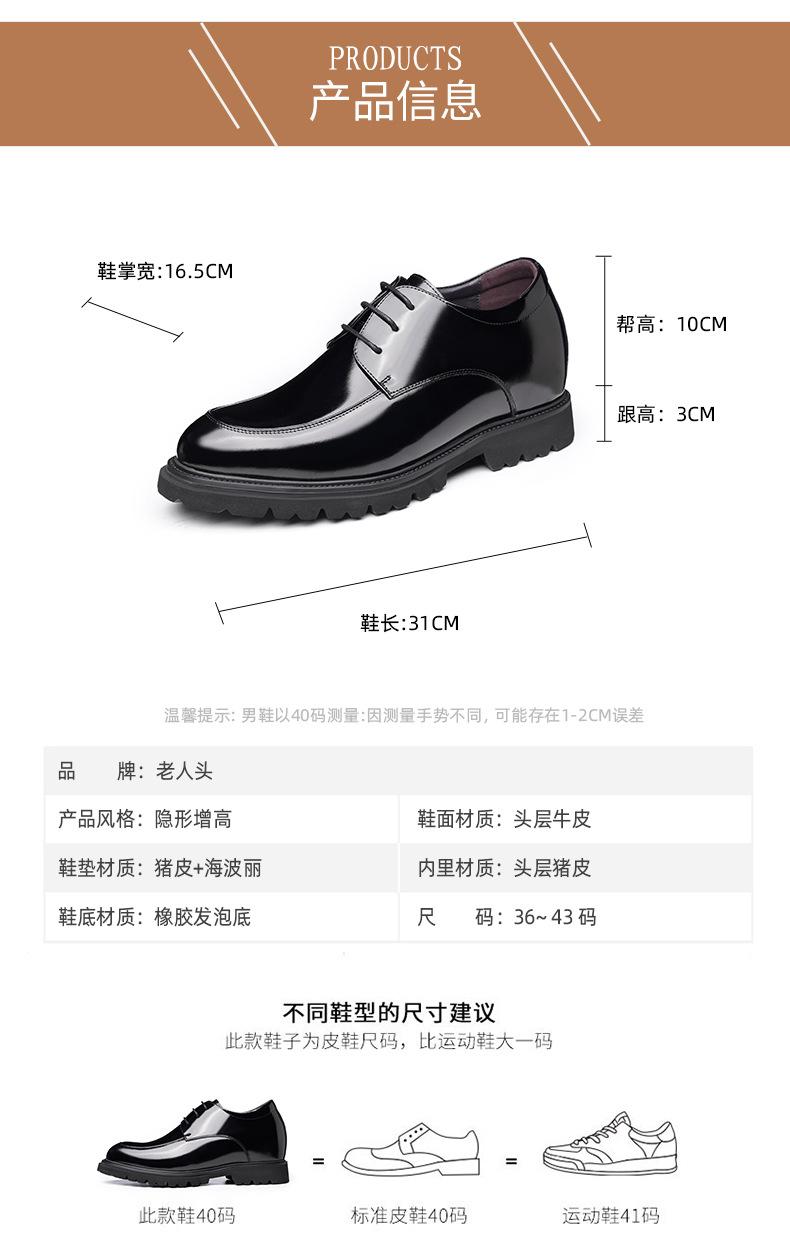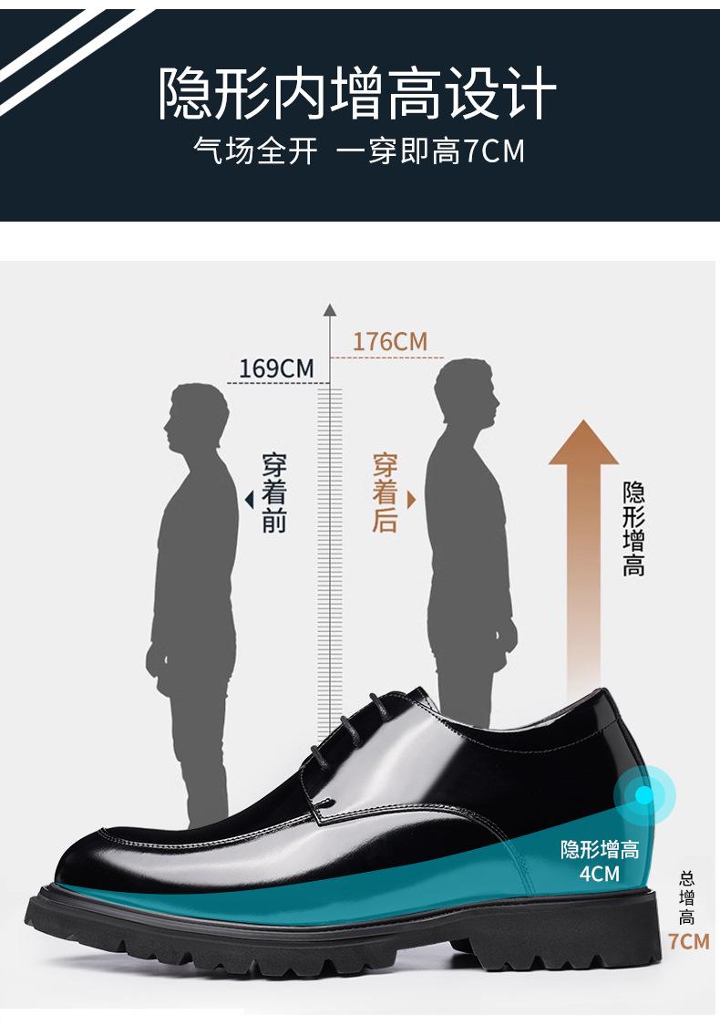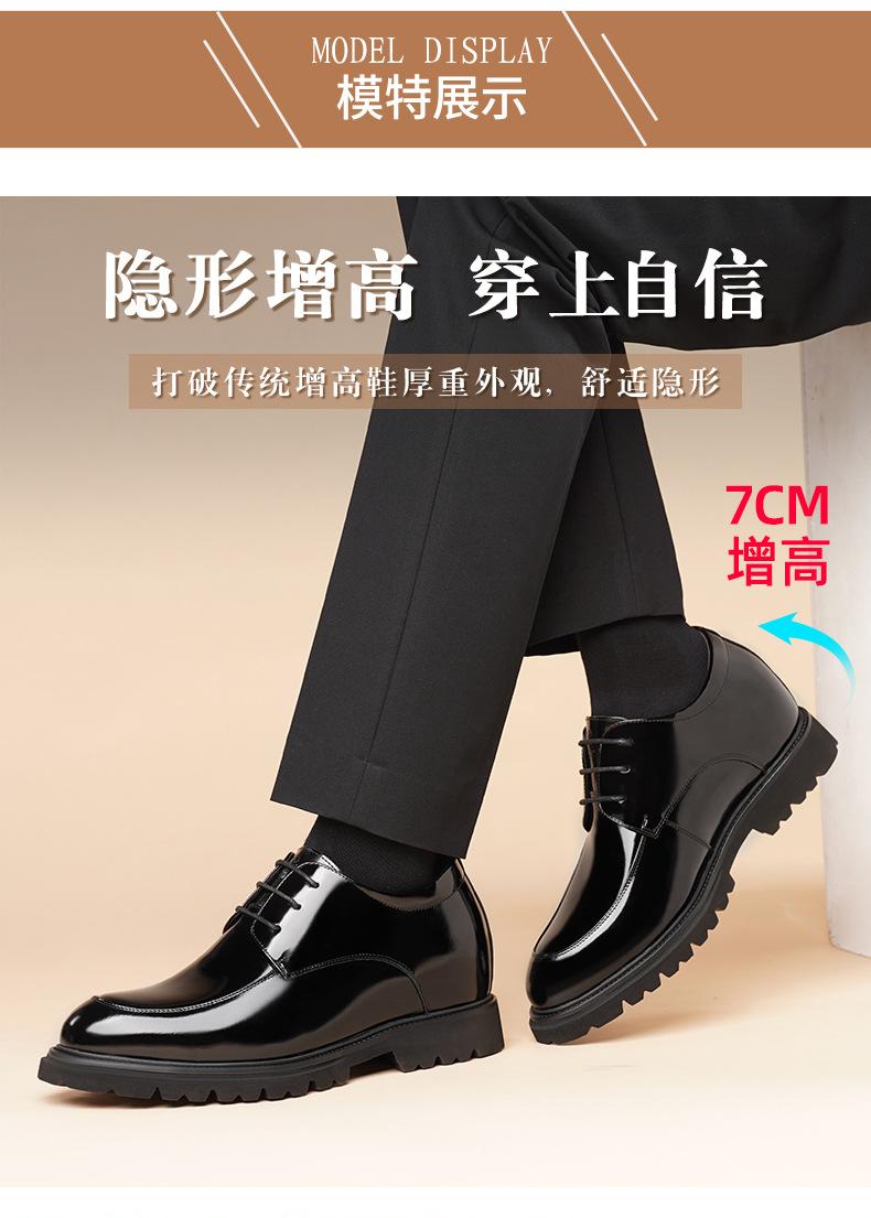 Zapatos Casuales de Cuero para Hombre Mayor, Mocasines Formales de Negocios de Cuero Genuino para Aumentar la Altura, Zapatos Brillantes Transpirables con Cordones para Hombre 72301