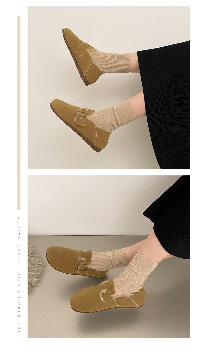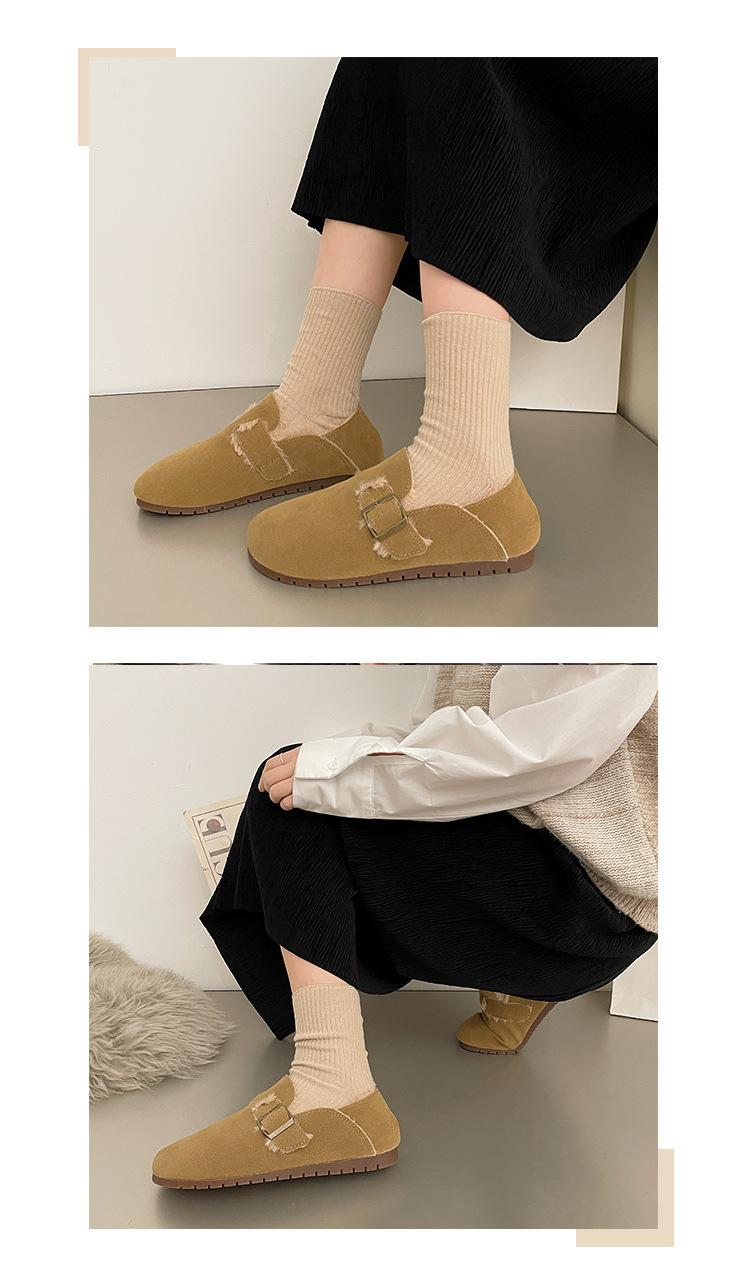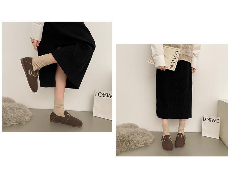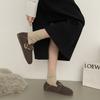 Zapatos Vintage Borken para Mujer Otoño e Invierno 2023 Nuevos Tendón de Res Suela Blanda Slip-on Casual Versátiles Guisantes Feos Zapatos Individuales para Mujer