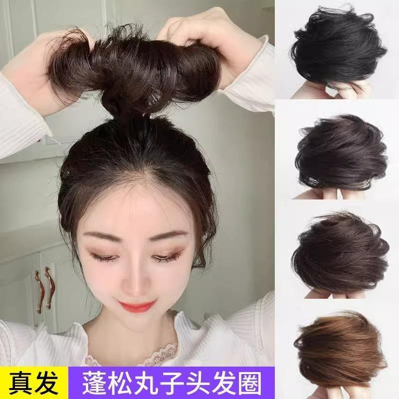 Peluca de cabeza de bolas de cabello real, anillo, esponjosa, natural, bráctea de flor, persona perezosa, moño enrollado, red, bolas falsas de internet, bolsa de peluca para mujeres