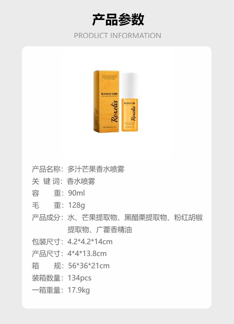 Spray Perfumado de Mango Jugoso para el Cuerpo, la Piel, las Muñecas, el Cuello, Fragancia Fresca y Elegante