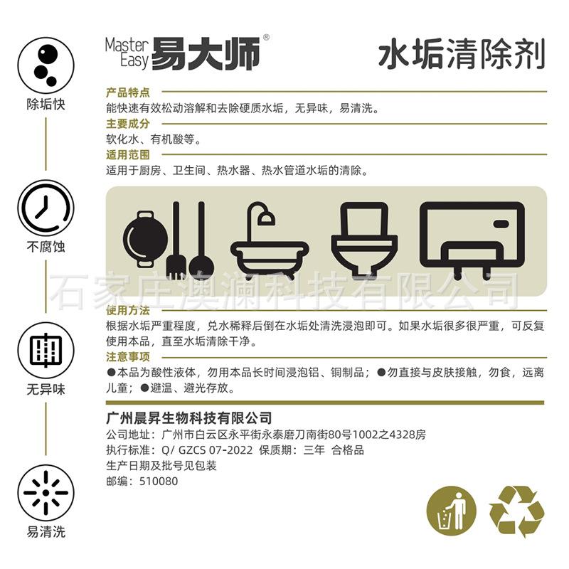 Eliminador de sarro de hoteles Easy Master, rápido y potente, sin olores ni corrosión.