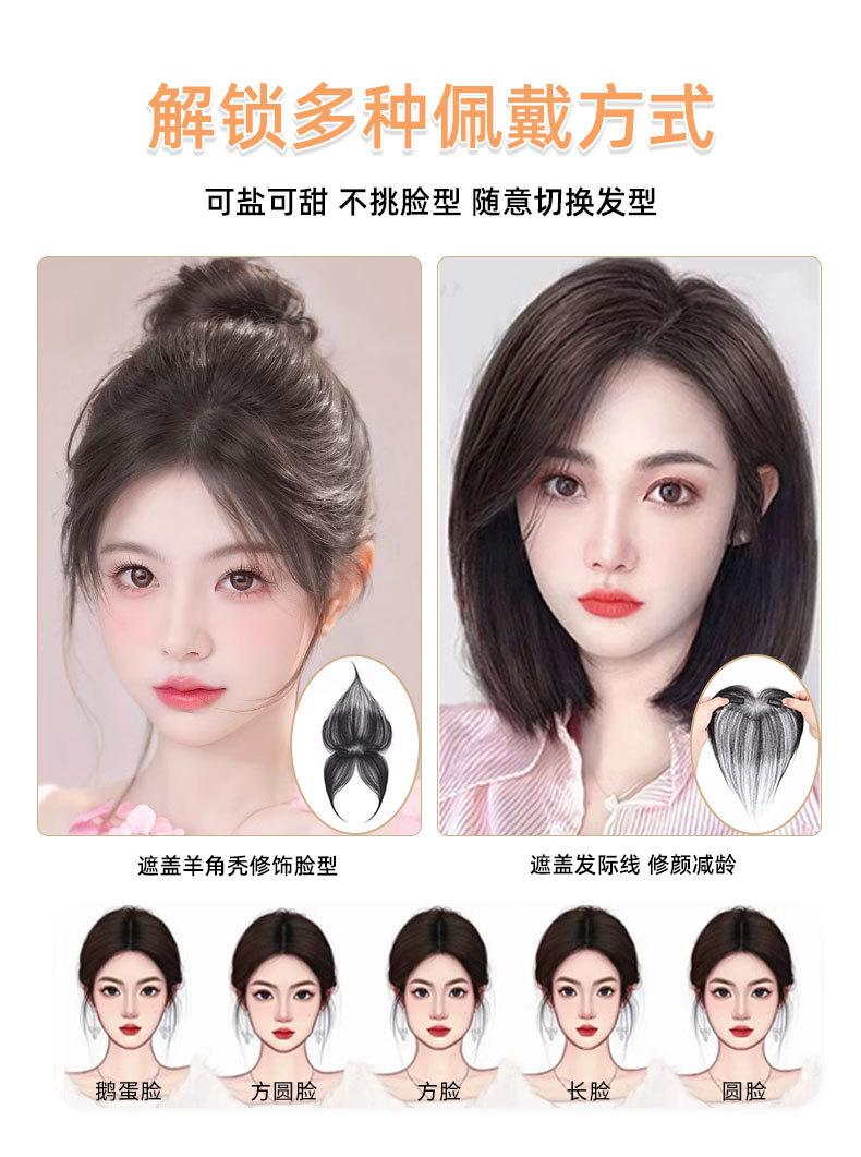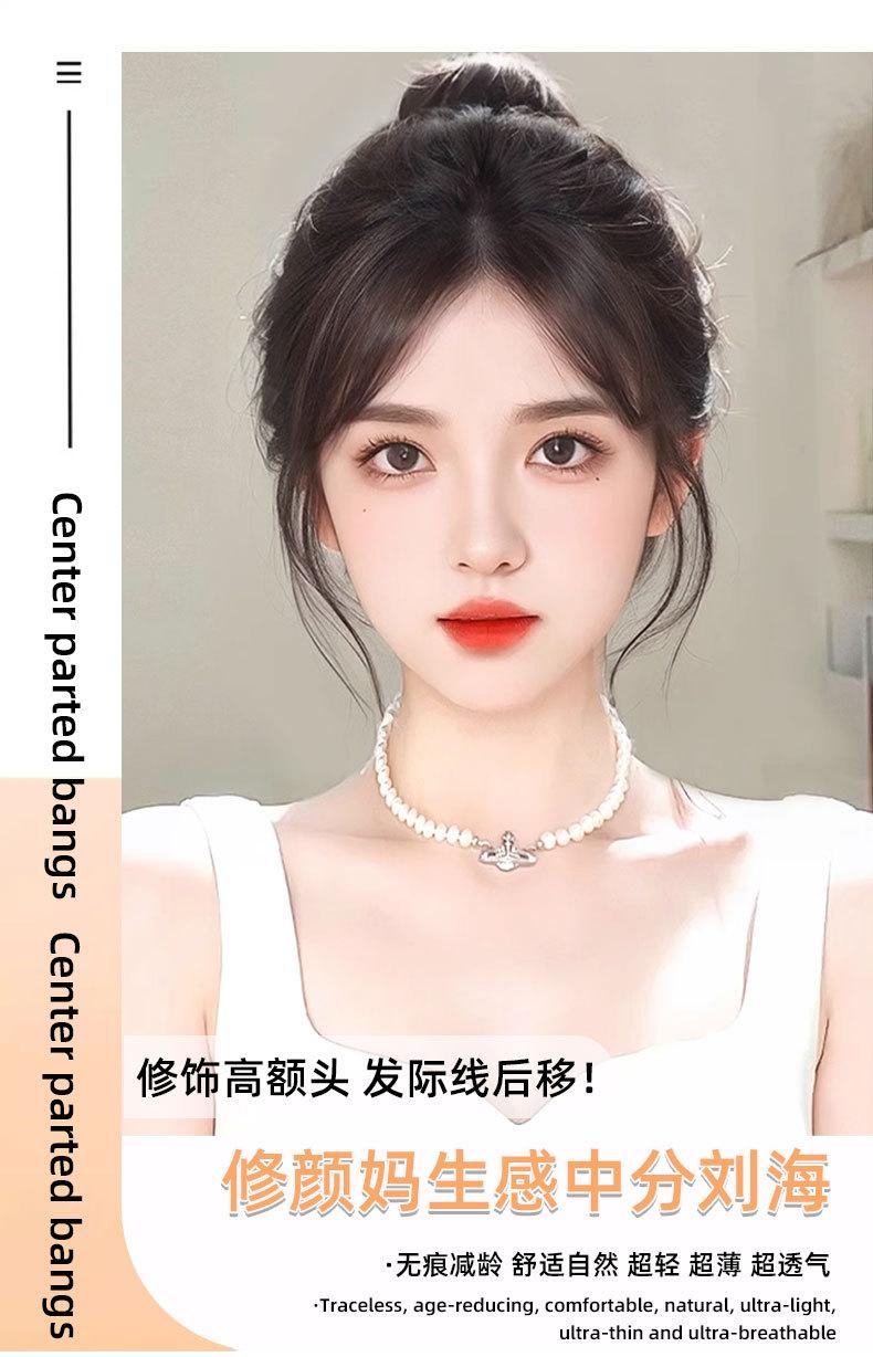 Flequillo de ocho caracteres totalmente tejido a mano, ligero, transpirable, que cubre la línea de nacimiento del cabello, invisible, natural, flequillo de cabello humano real completo, peluca al por mayor