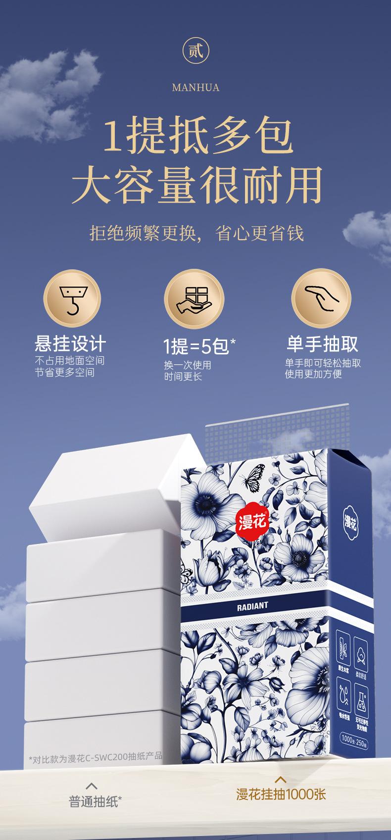 Manhua Caja Colgante de Pañuelos 8000 Hojas Paquete de Valor para el Hogar Papel Higiénico Pañuelos Faciales Engrosados Venta al por Mayor