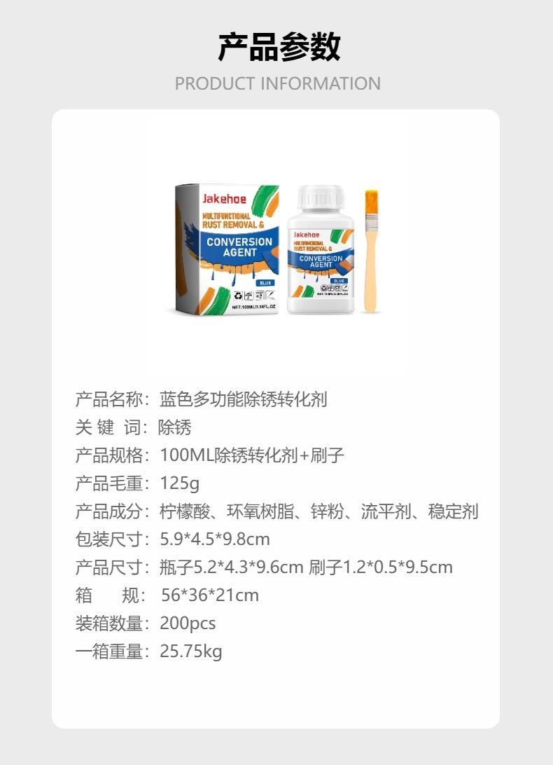 Jakehoe Azul Agente Multifuncional de Conversión para Eliminación de Óxido Eliminación de Óxido y Prevención de Óxido Tratamiento de Óxido de Superficie Metálica Agente de Conversión