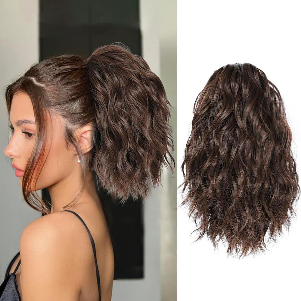 Extensión de Cola de Caballo con Cordón Cruzado para Comercio Exterior, Extensión de Cola de Caballo de Fibra Sintética, Cola de Caballo Corta, Postizo Ondulado Rizado para Mujer
