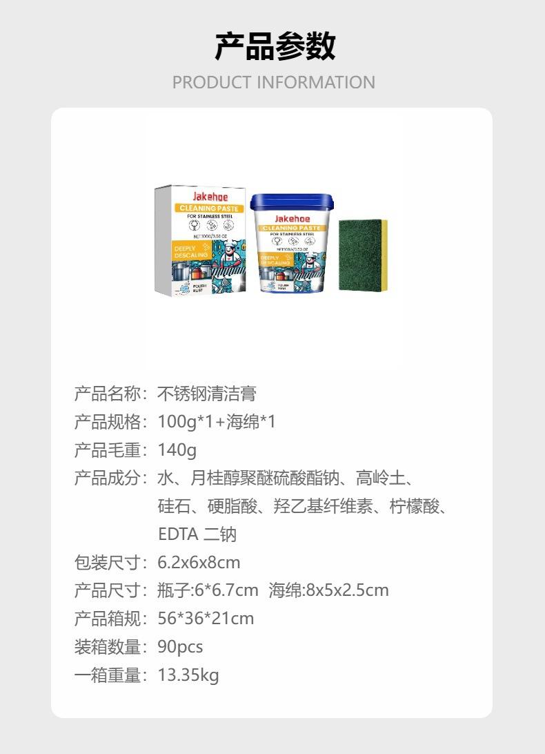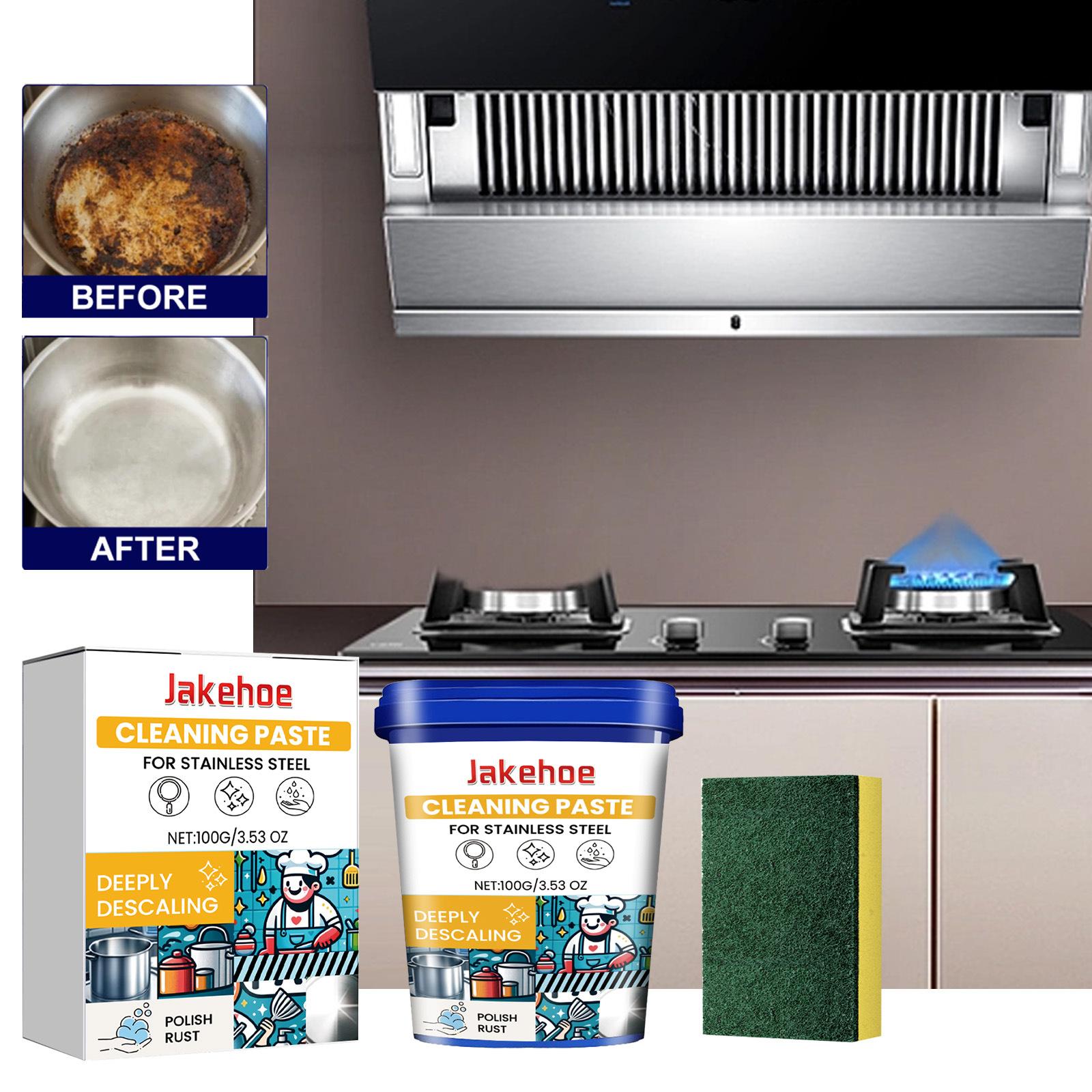 Jakehoe pasta limpiadora de acero inoxidable pasta limpiadora pulidora para eliminar manchas de suciedad negra del fondo de ollas de acero inoxidable