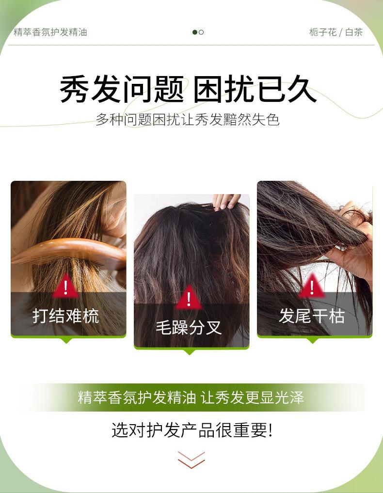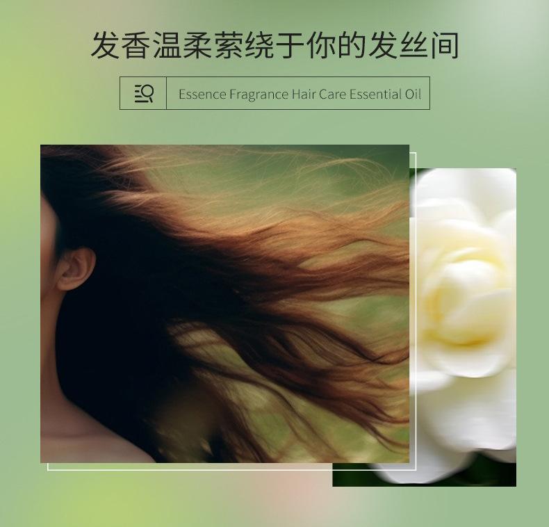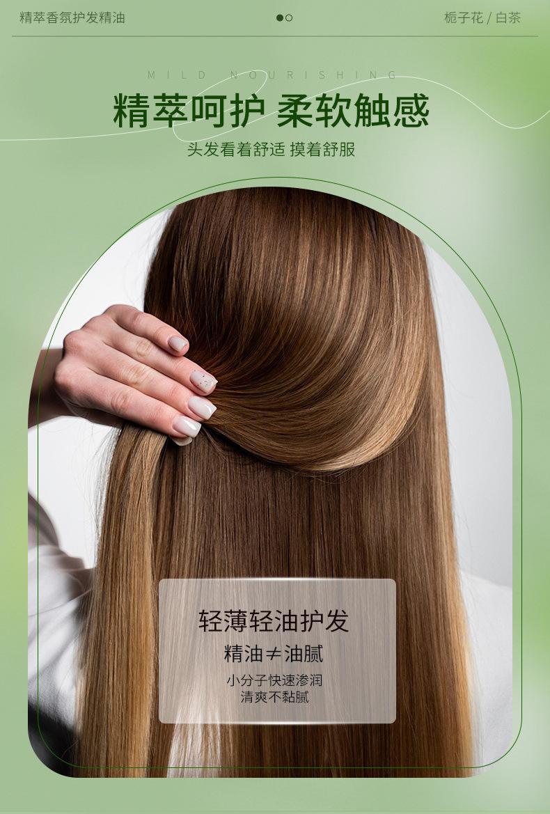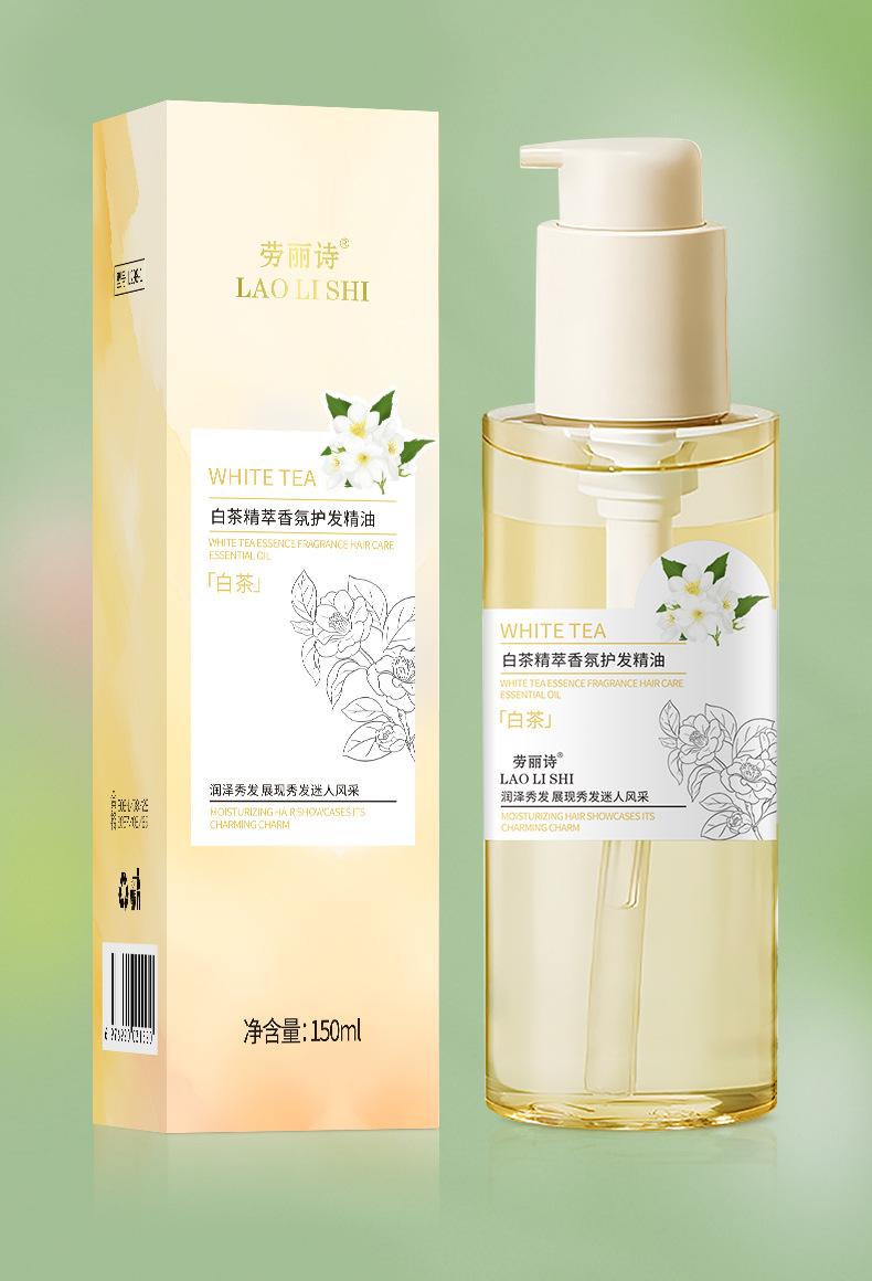 Aceite esencial para el cuidado del cabello con fragancia de extracto de gardenia de té blanco Laurie. Mejora la suavidad y la fragancia duradera del cabello rizado seco y fragante.