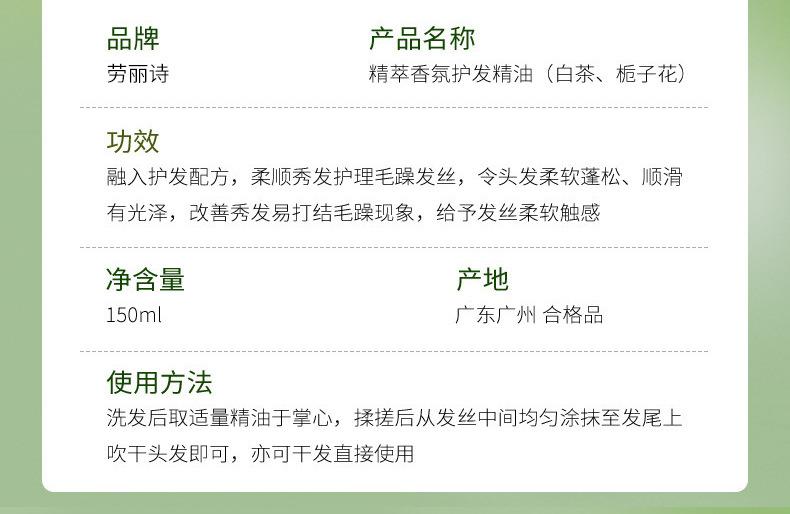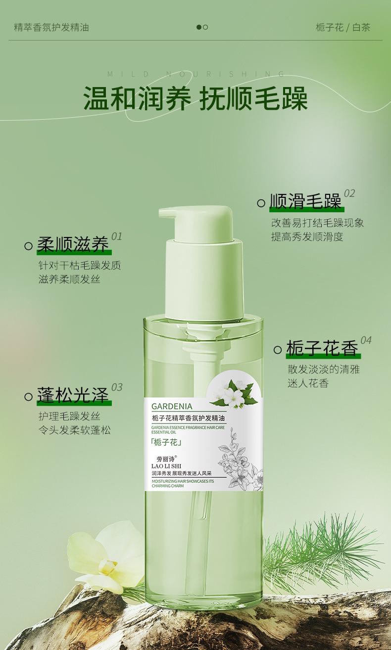 Compra Aceite esencial para el cuidado del cabello con fragancia de extracto de gardenia de té blanco Laurie. Mejora la suavidad y la fragancia duradera del cabello rizado seco y fragante. al por mayor en Joom.pro