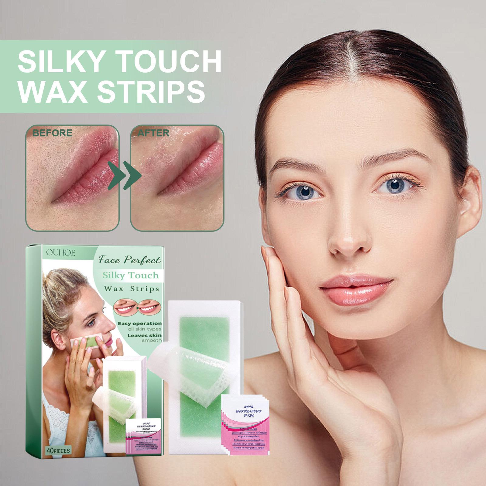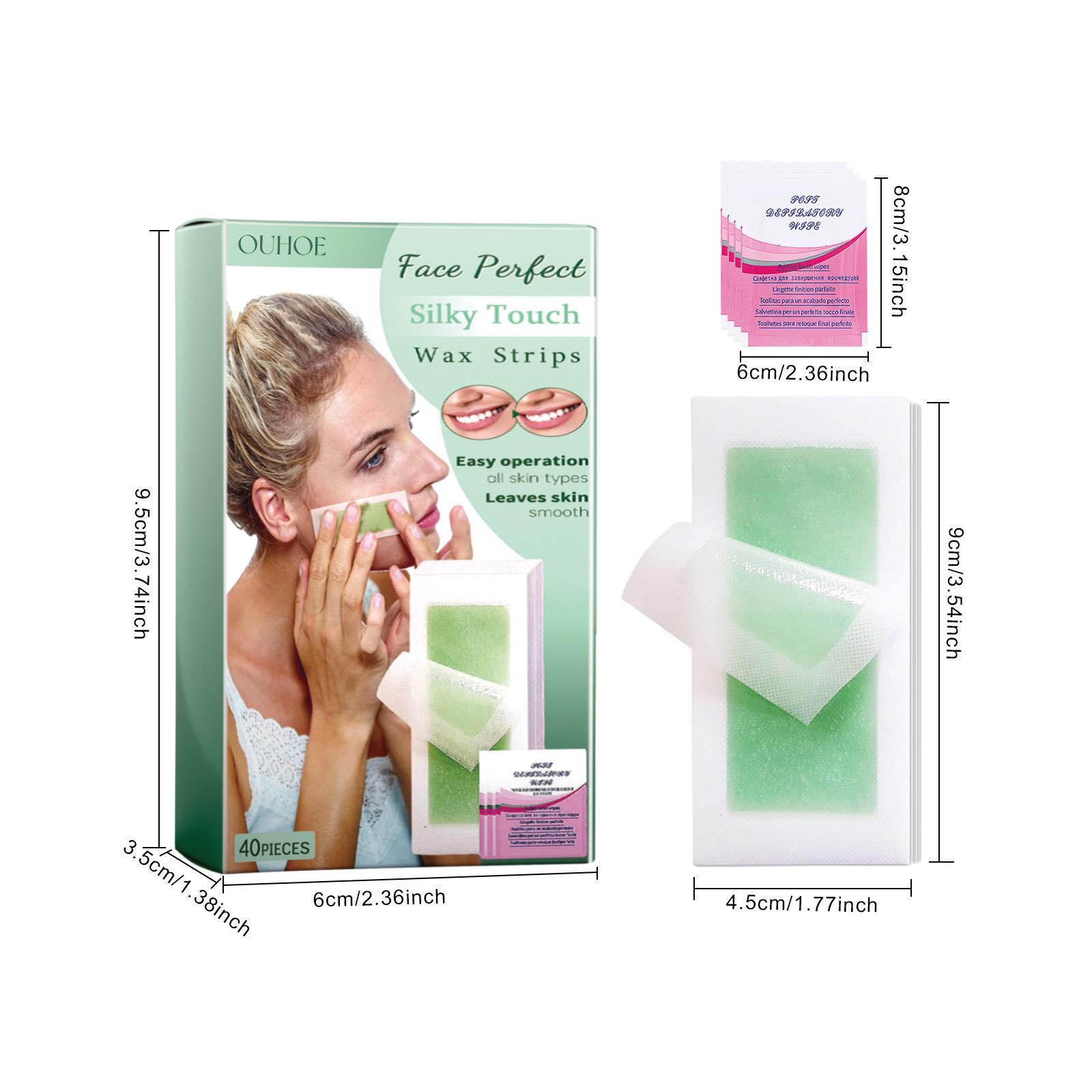 La banda de cera depilatoria facial Ouhoe es suave y no irritante, hidratante, refrescante y limpiadora. Banda de cera depilatoria facial para labios.