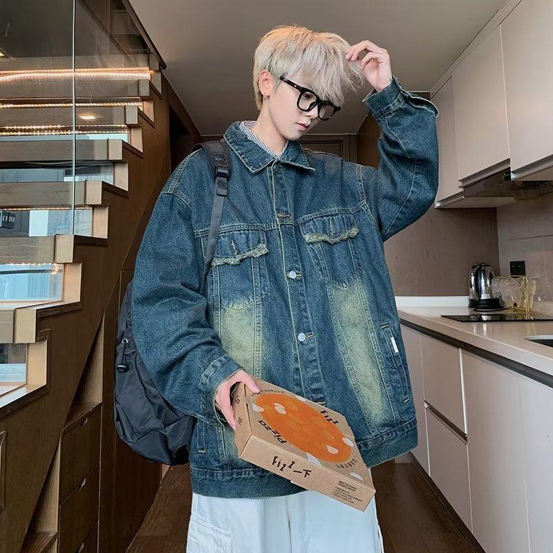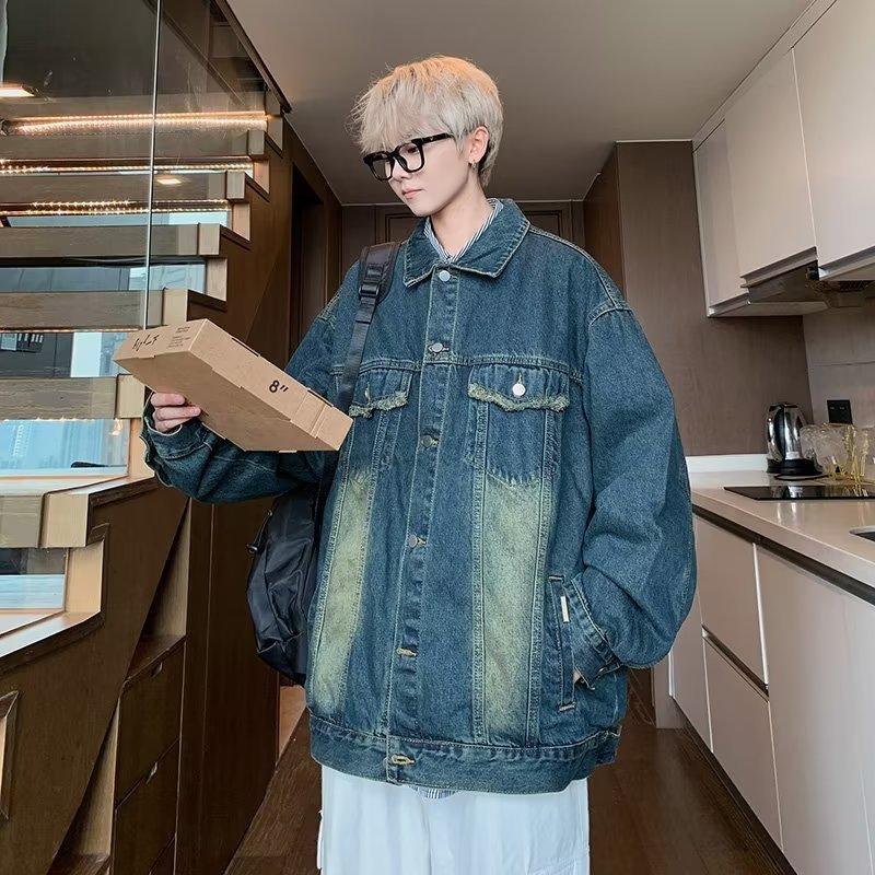 Chaqueta de mezclilla lavada de marca de moda de primavera y otoño, ropa holgada y elegante para hombre, chaqueta casual retro americana