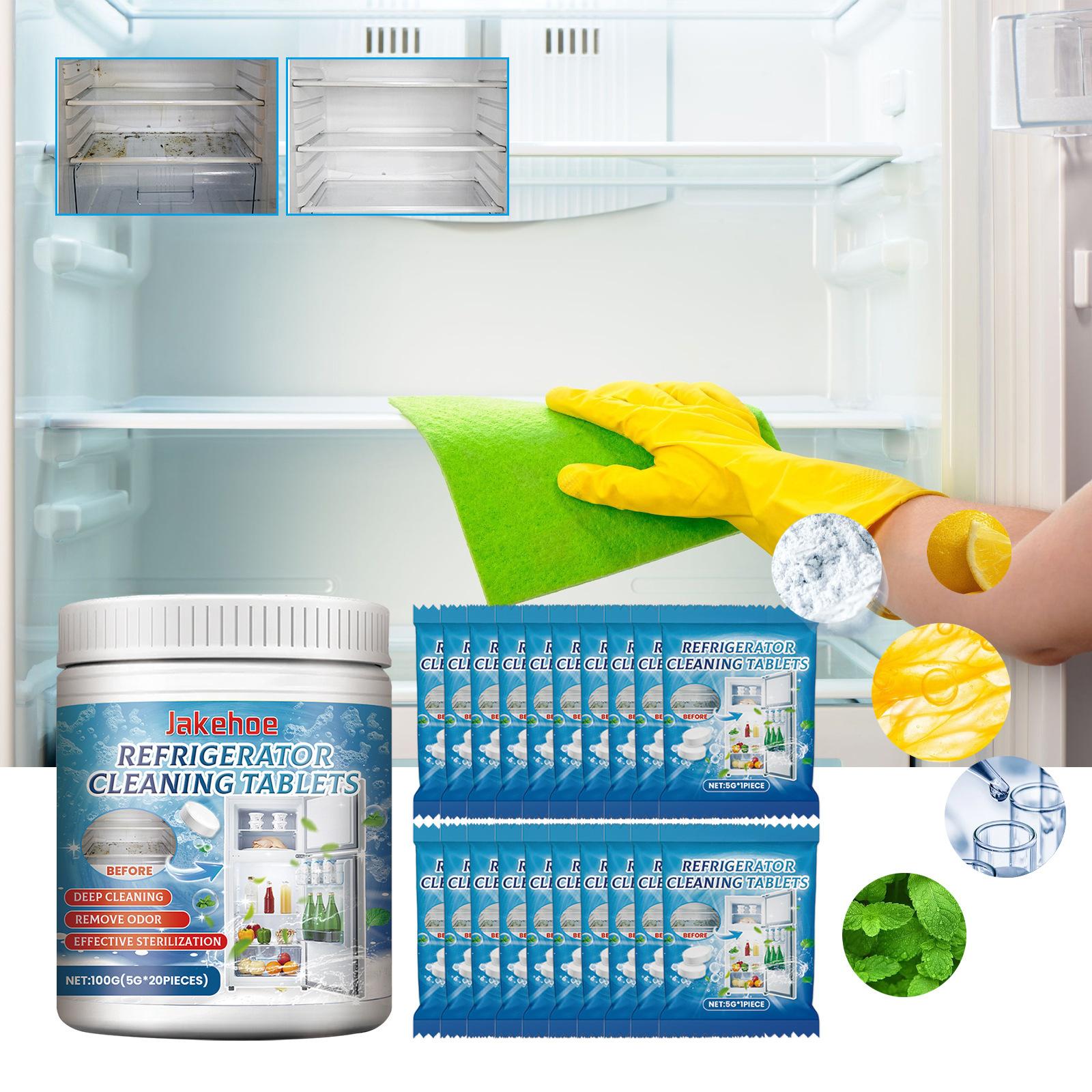 Pastillas limpiadoras para refrigeradores jakehoe. Limpieza profunda del refrigerador y el congelador. Descalcificación de suciedad y olores. Pastillas efervescentes.