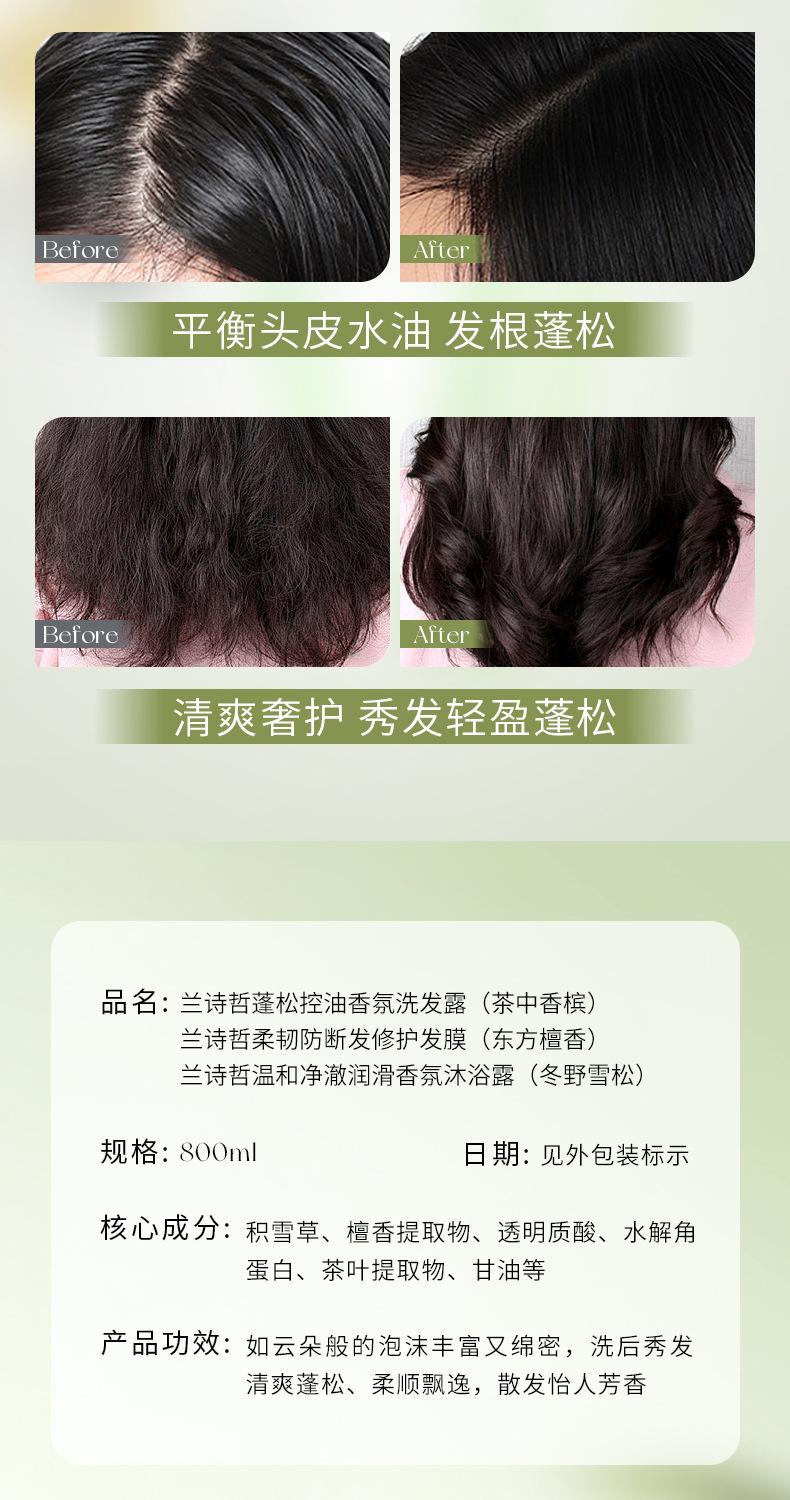 Lanshe fluffy oil control fragrance shampoo (champagne in tea) 800ml