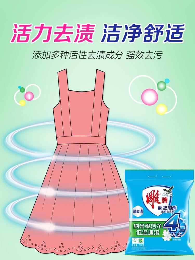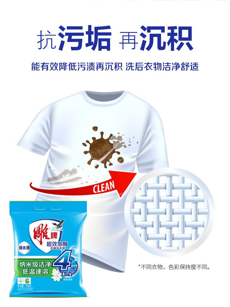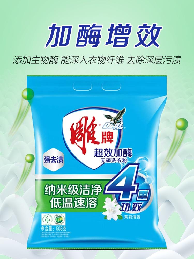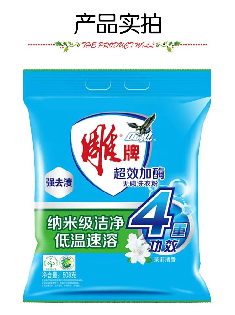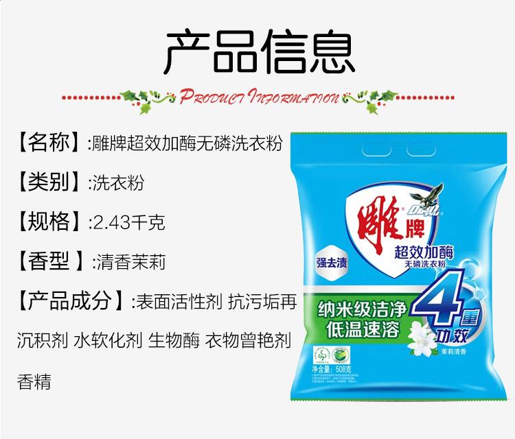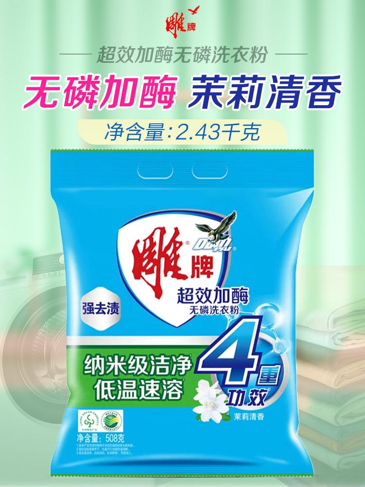 Detergente en polvo marca Diao 2.43kg enzima super efectiva fragancia jazmín fuerte remoción de manchas descontaminación multiburujas fácil de flotar ahorro de agua para el hogar