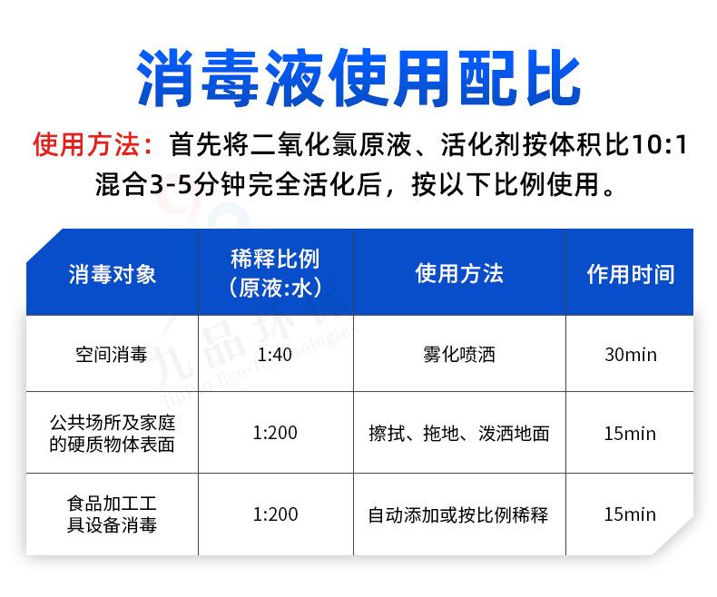 Desinfección del aire Estable Dióxido de cloro Conservante Blanqueador de mariscos Desinfección Esterilización Seguridad No irritante Conservante Blanqueador