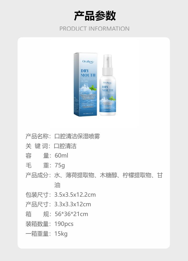 Spray Limpiador e Hidratante para Dientes Oralhoe Transfronterizo para Cuidado Diario, Cuidado Suave para Manchas Dentales, Aliento Fresco
