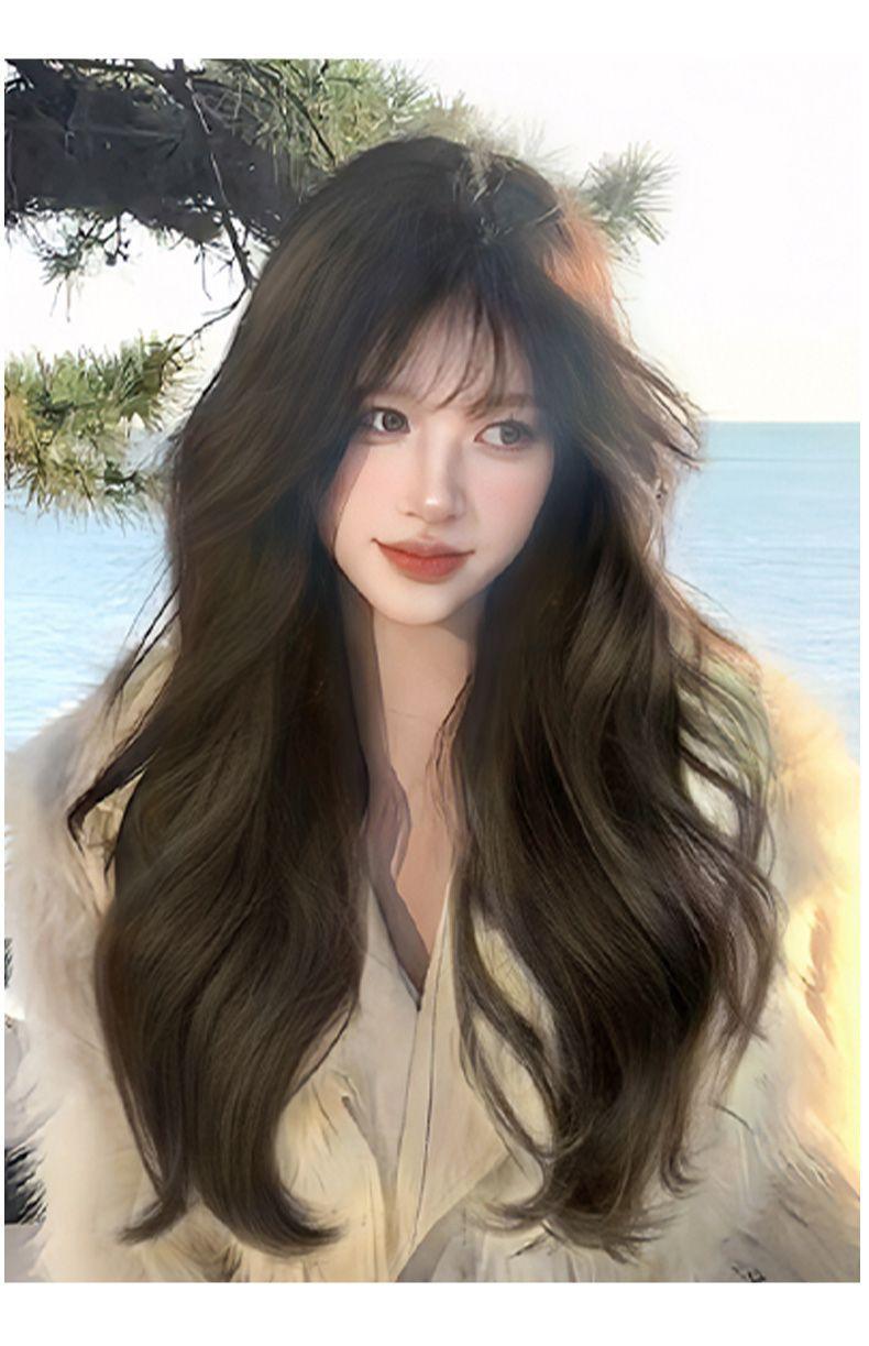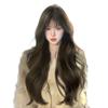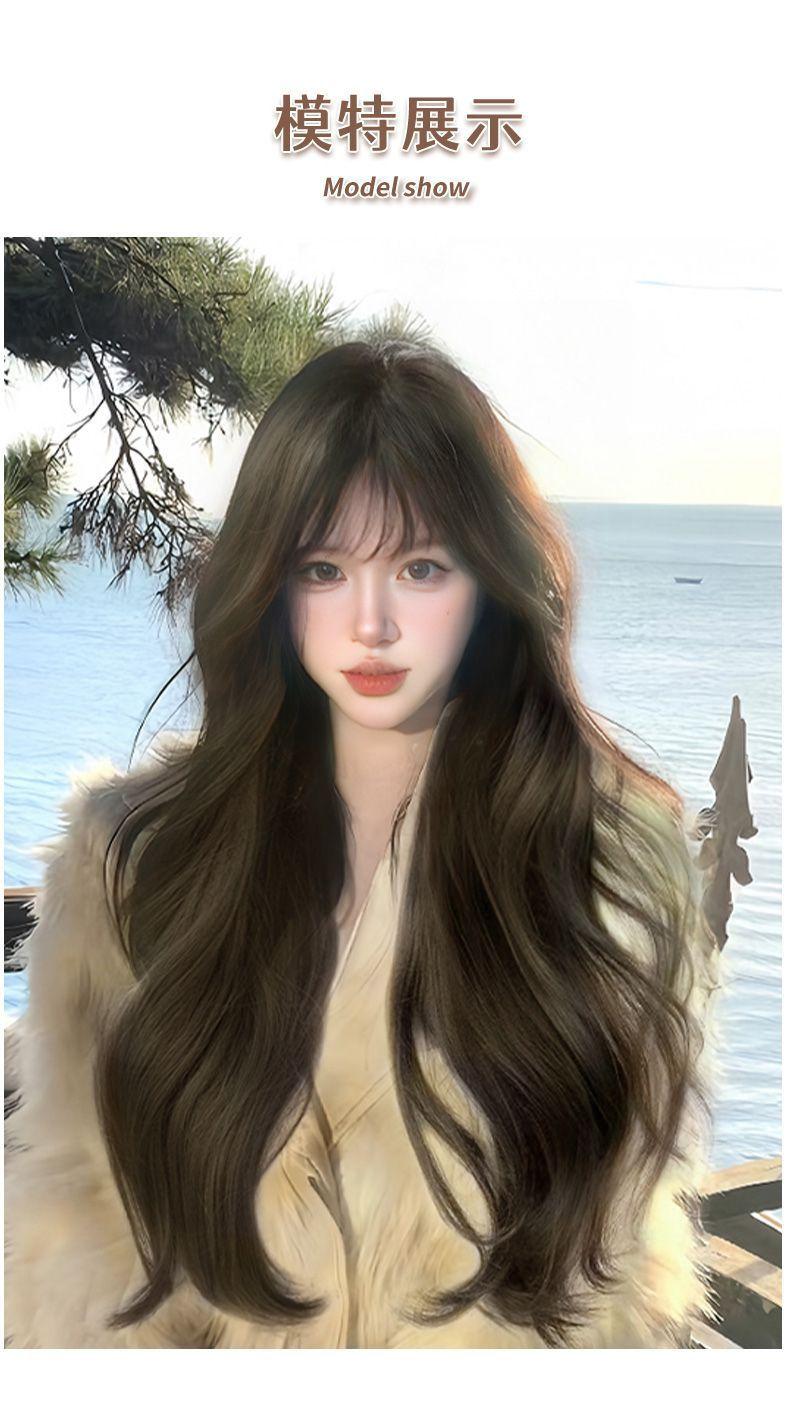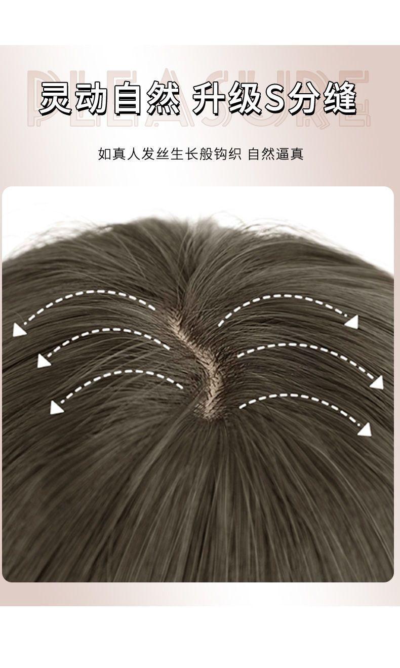 [Sal marina con queso] Peluca femenina con flequillo dividido en medio, degradado azul platino, en capas, teñida, natural, conjunto completo