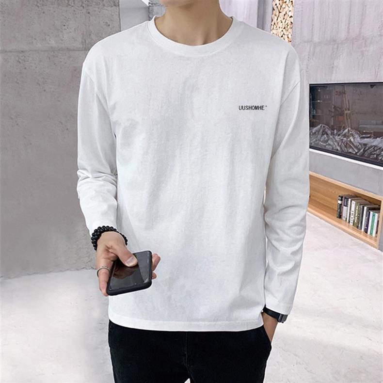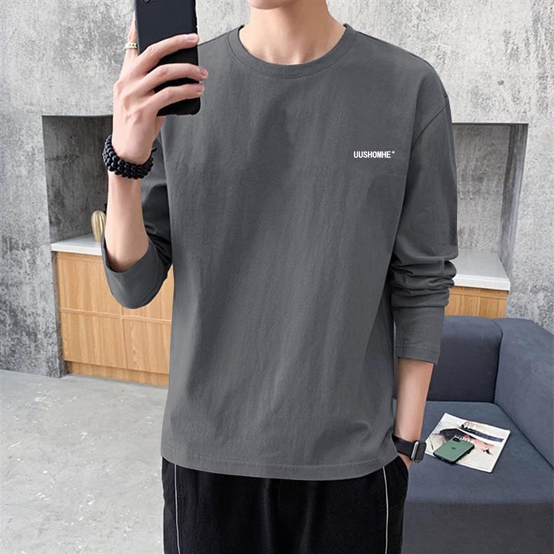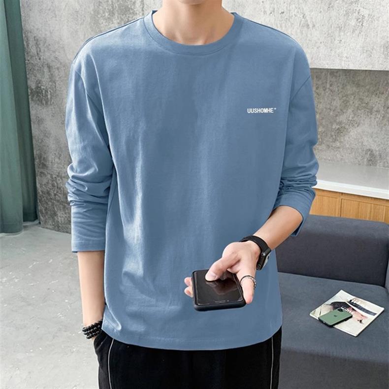Camiseta de manga larga de otoño para hombre, camiseta de cuello redondo de moda para jóvenes, camiseta básica para hombre