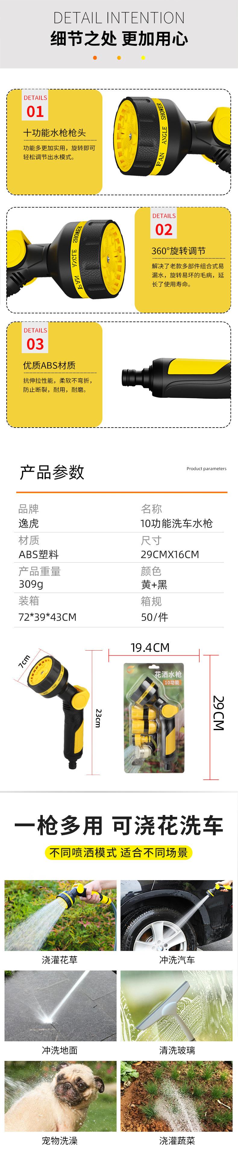 Pistola de agua para lavado de autos, juego de pistola de agua multifuncional, pistola de agua de alta presión, herramienta de riego de jardín, 10 funciones