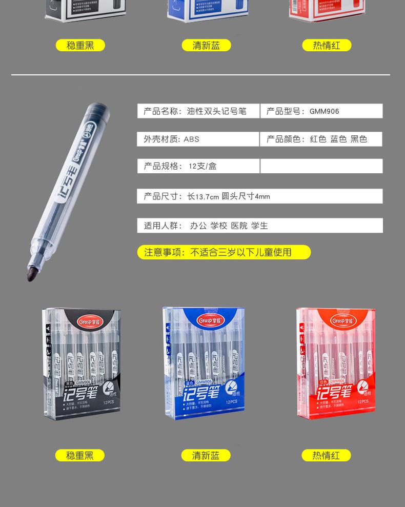 Marcador aceitoso de doble punta Master para pintura infantil, negro, base agua, pluma de gancho para dibujo, pluma de borde de grosor, marcador logístico