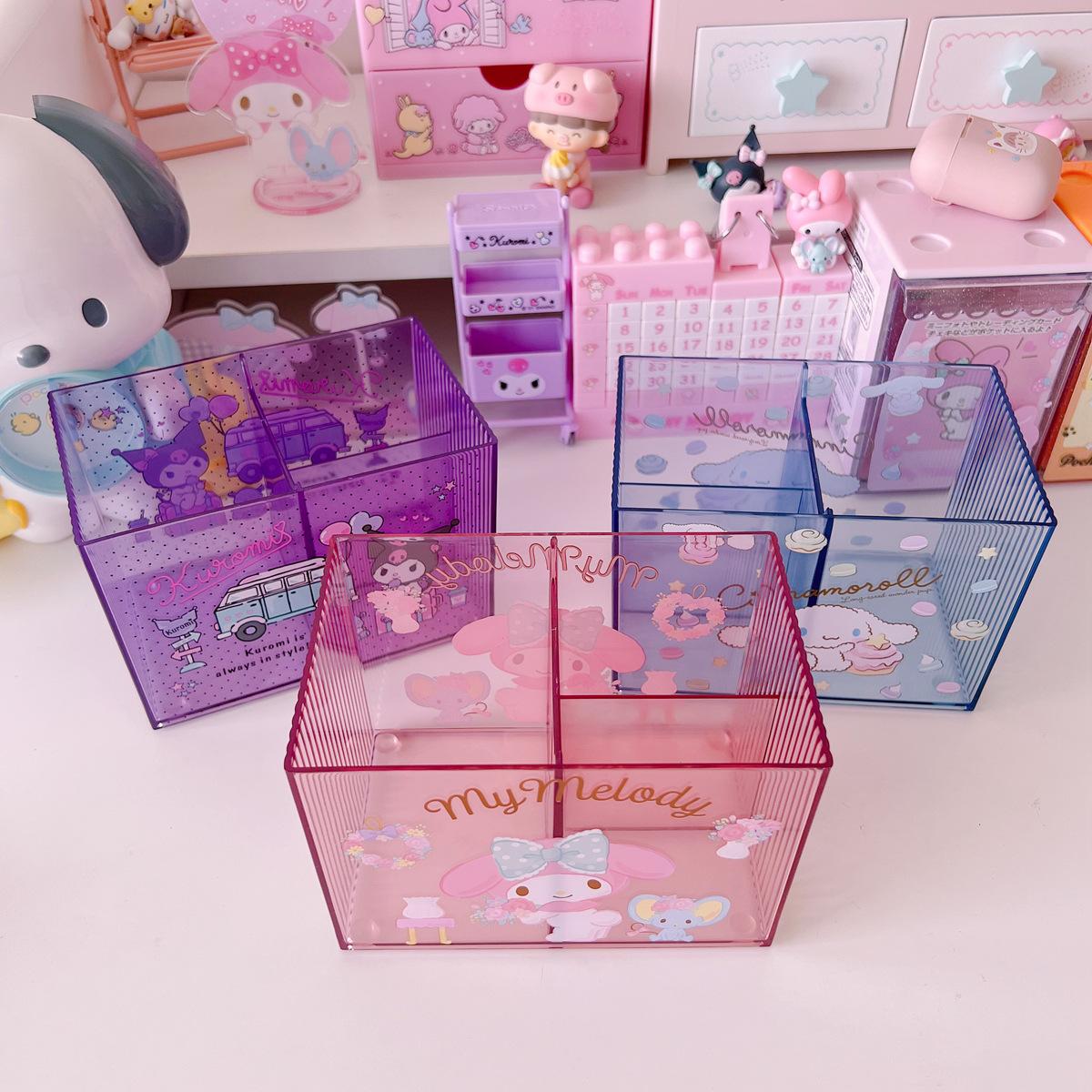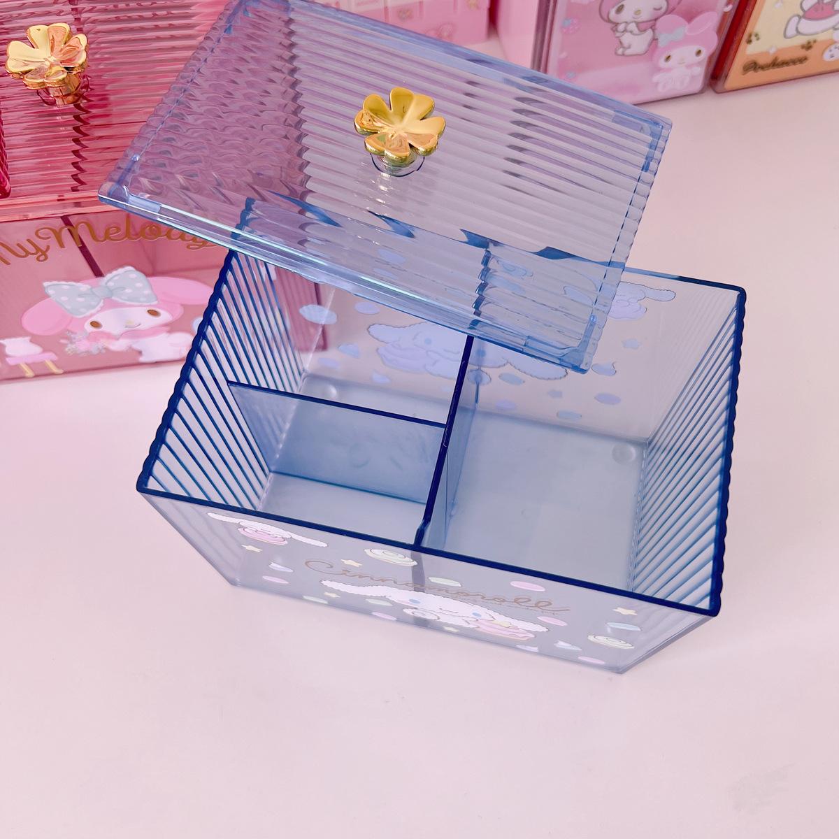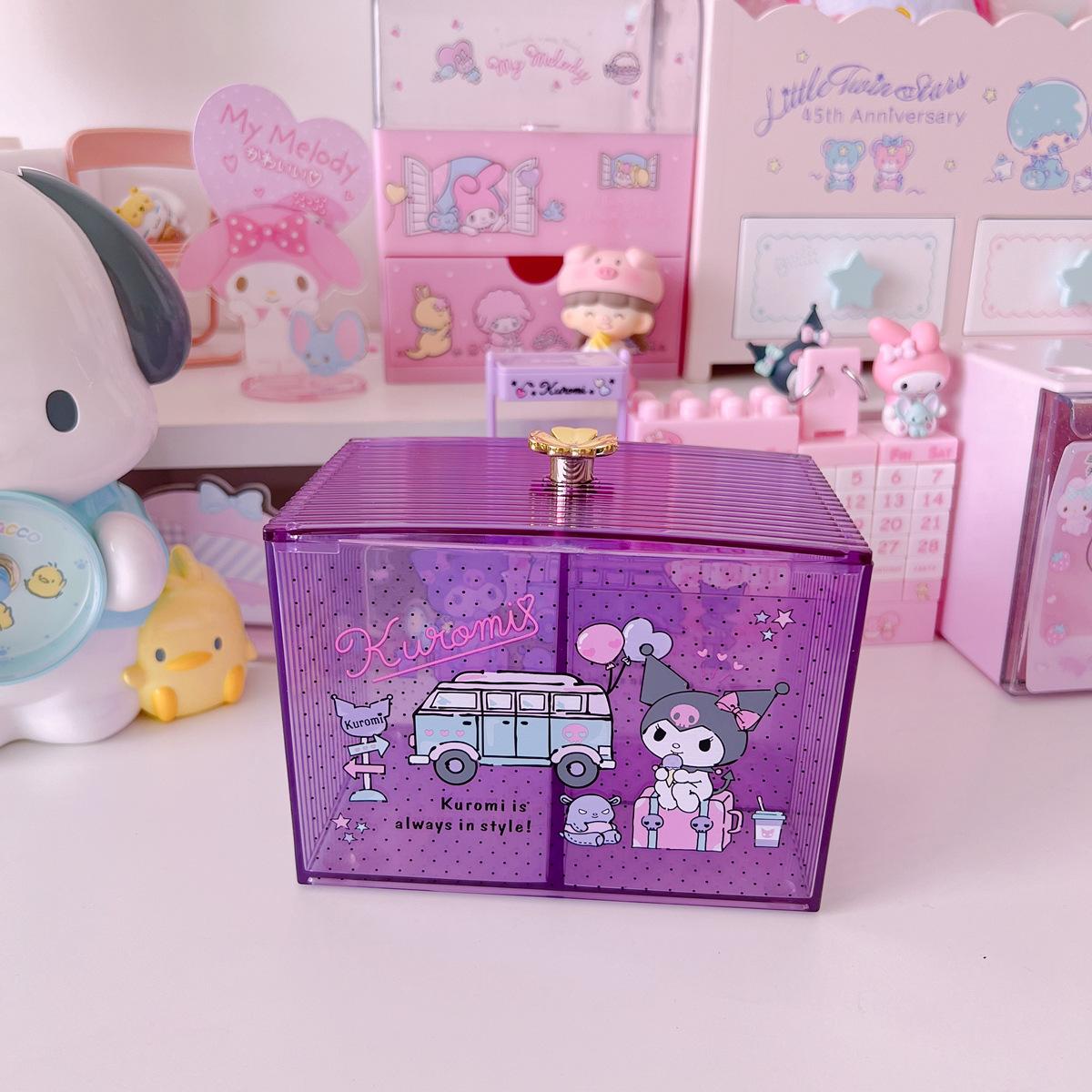 Lindo Dibujo Animado Kulomi Meruti Escritorio Papelería Hisopo de Algodón Artículos Cosméticos Misceláneos Caja de Almacenamiento Transparente con Tapa Joyería