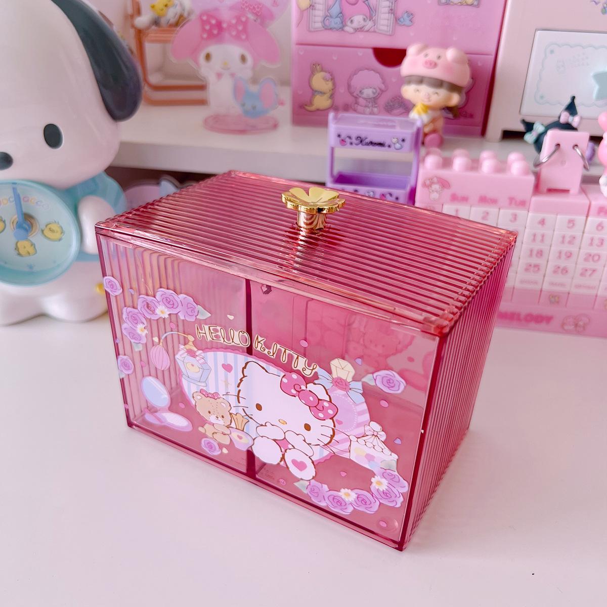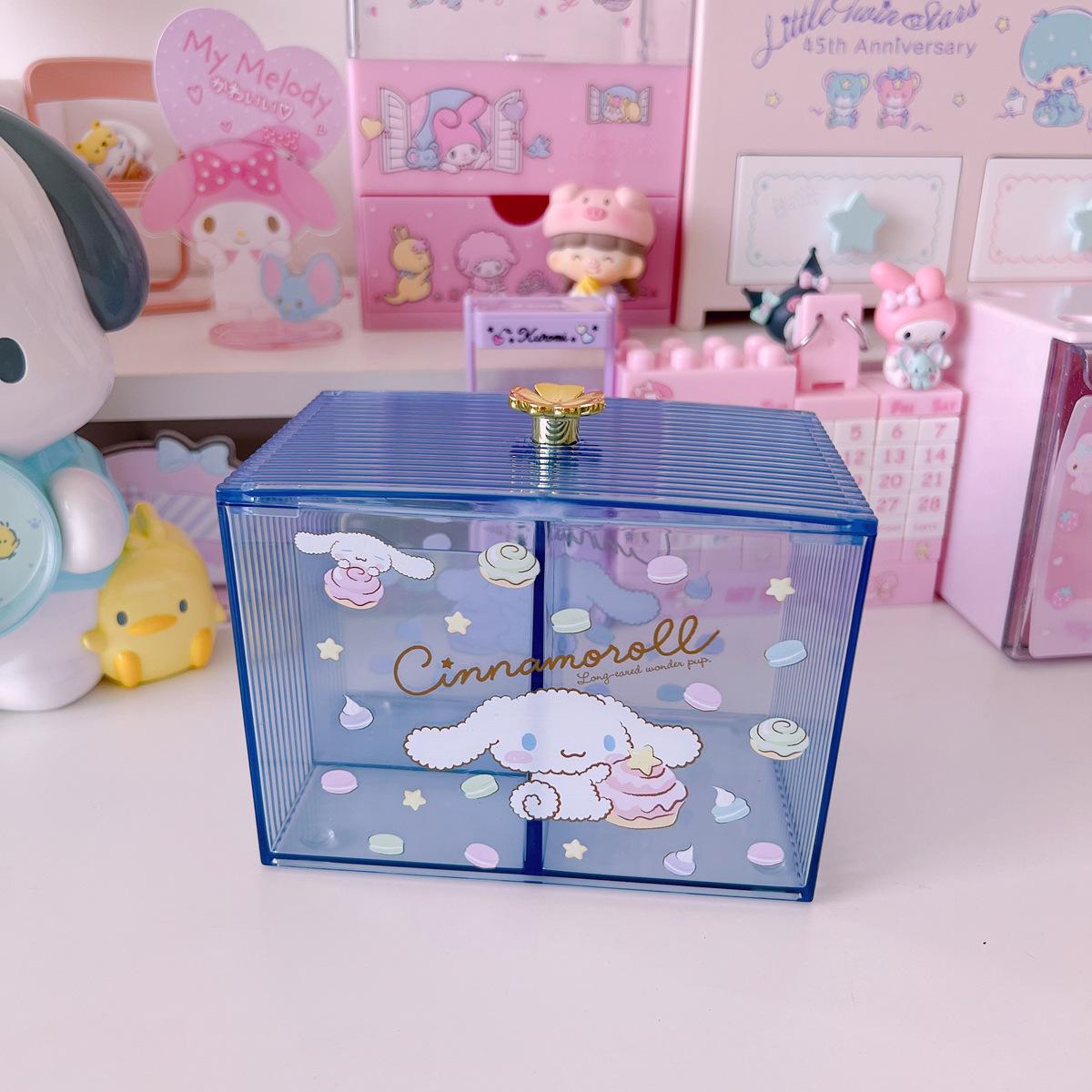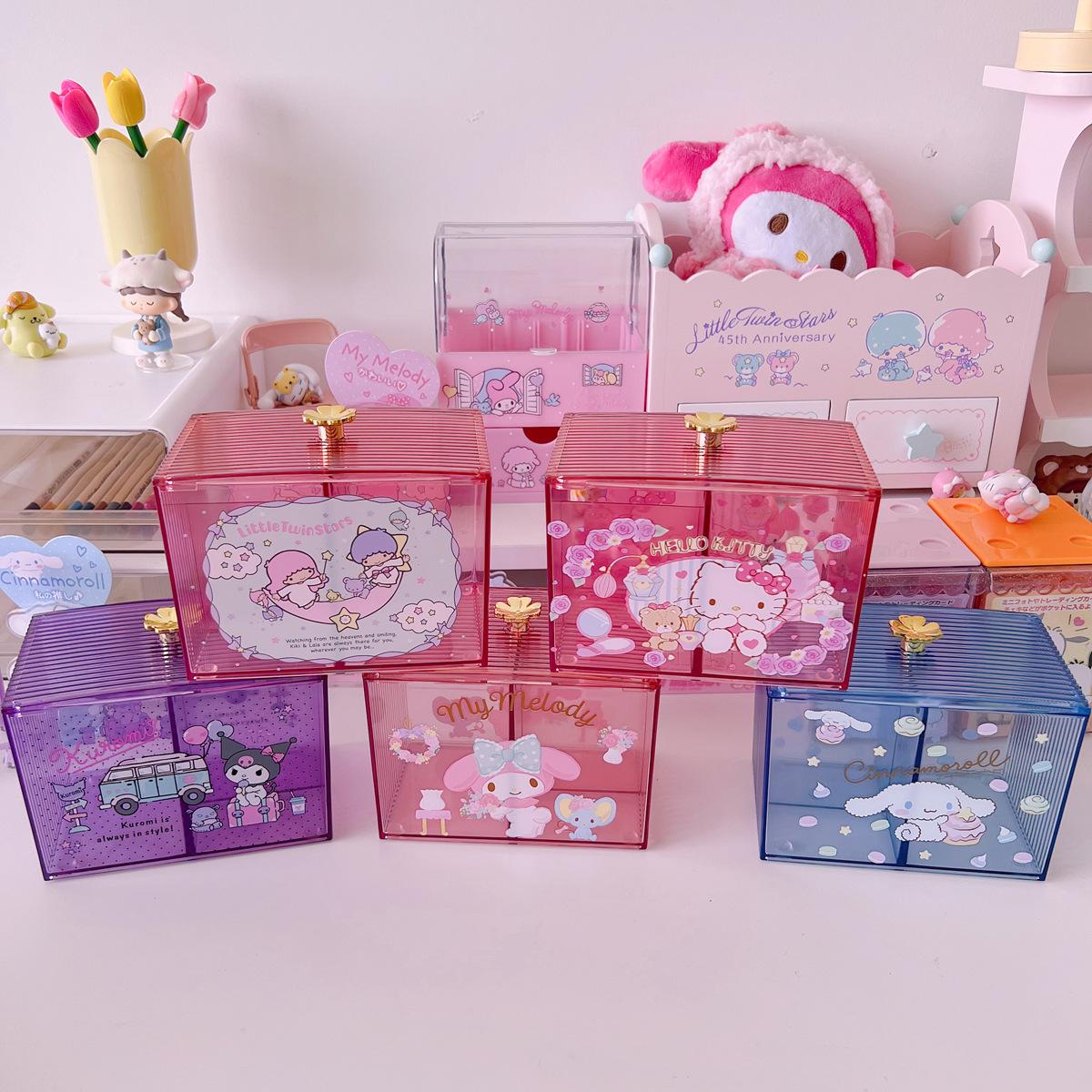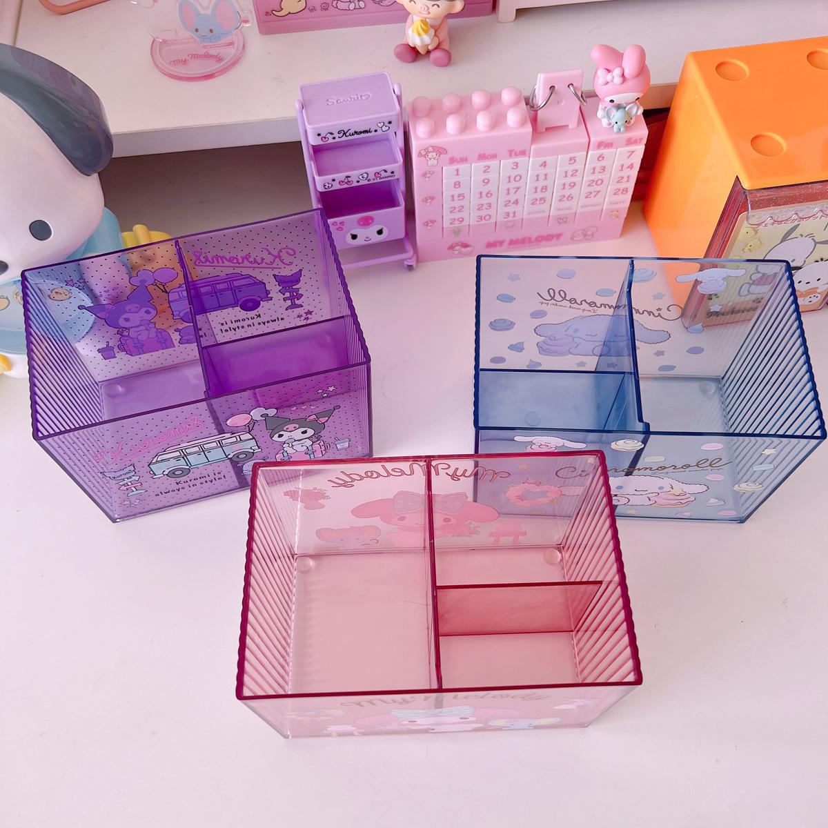 Lindo Dibujo Animado Kulomi Meruti Escritorio Papelería Hisopo de Algodón Artículos Cosméticos Misceláneos Caja de Almacenamiento Transparente con Tapa Joyería