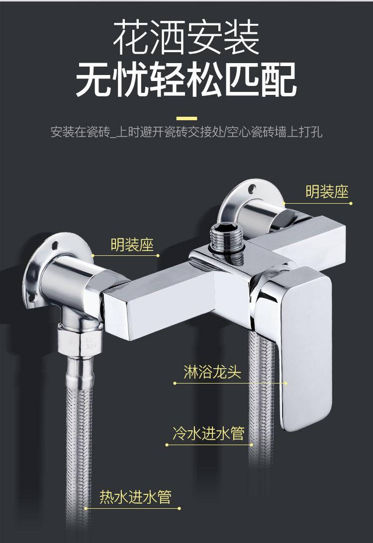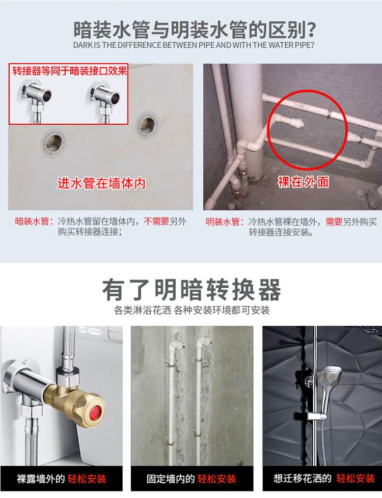 Cabezal de ducha de cobre con válvula mezcladora, grifo con base abierta, adaptador de una pieza engrosado, asiento fijo de pared con luz oscura