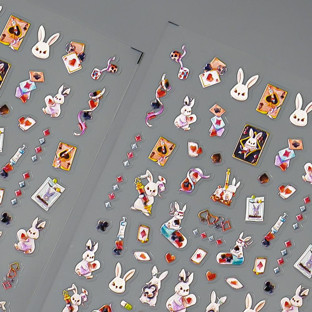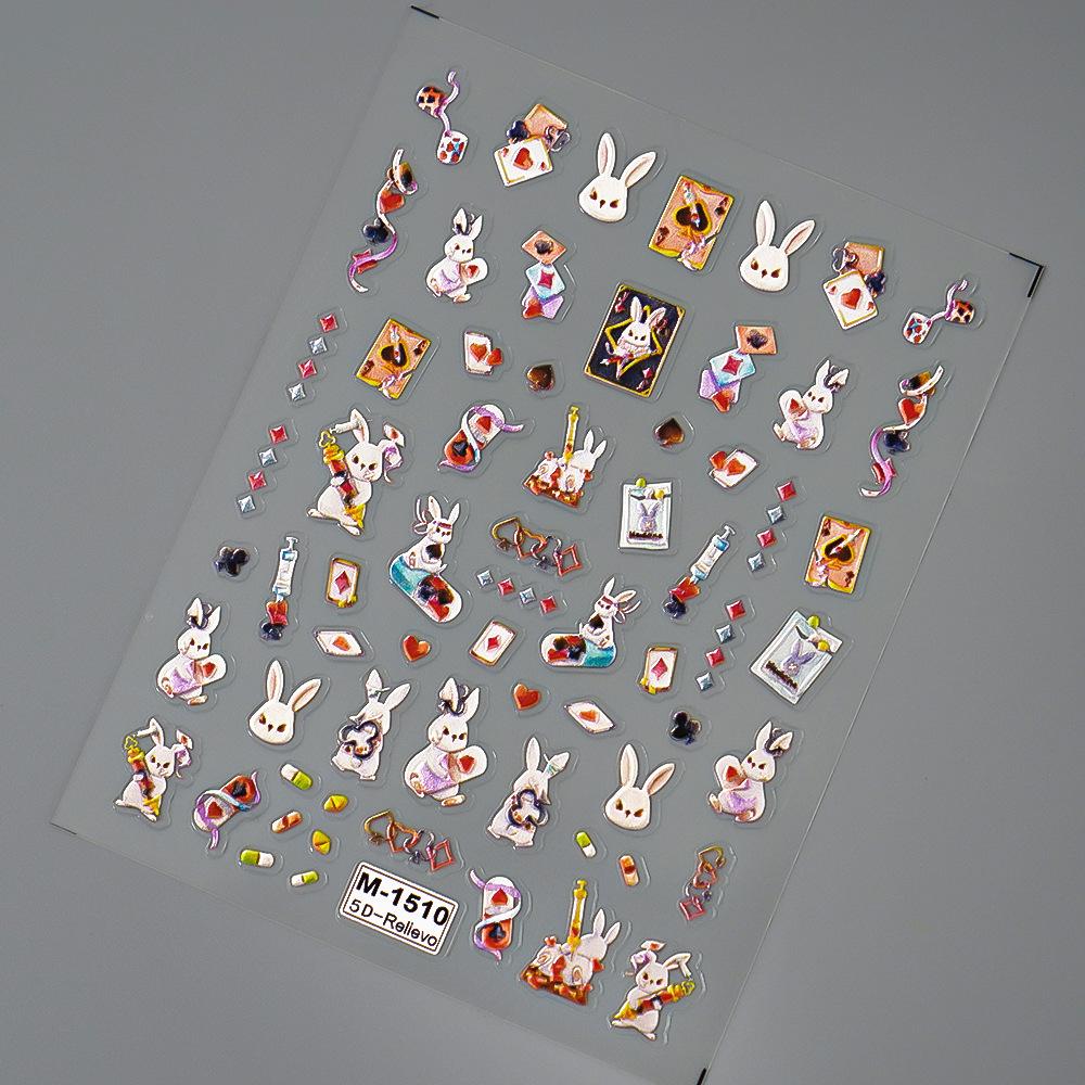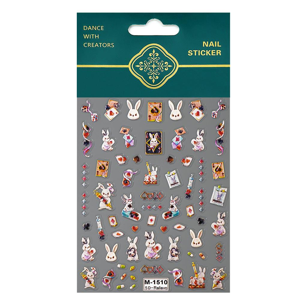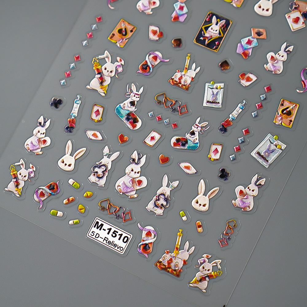 Nuevas pegatinas para uñas Redanco 5D con relieve, estilo INS, con diseño de naipes de dibujos animados y conejos, M-1510