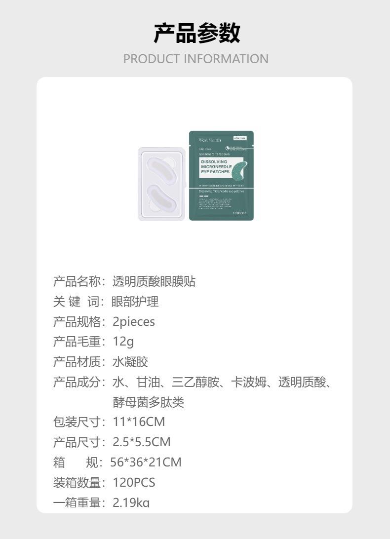 Mascarilla de ojos con ácido hialurónico West Month, parche para ojos, color periocular, hidratante, para el cuidado de la piel.