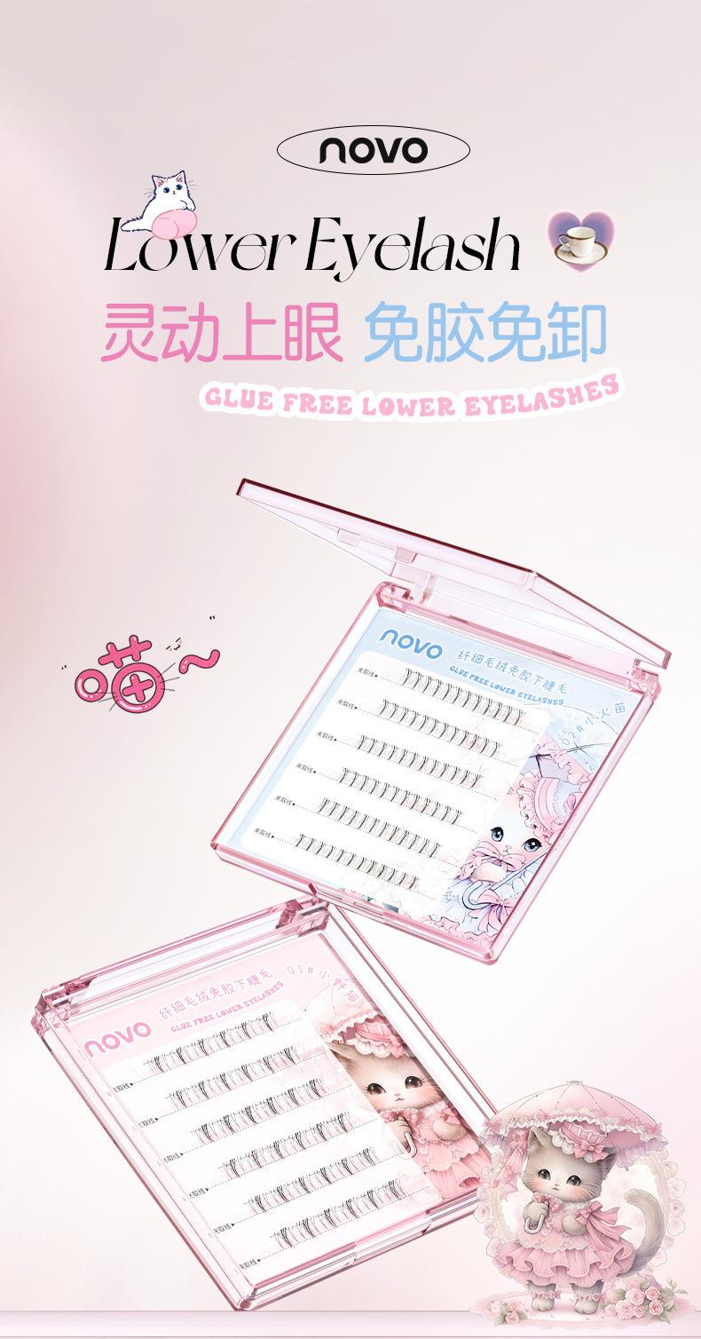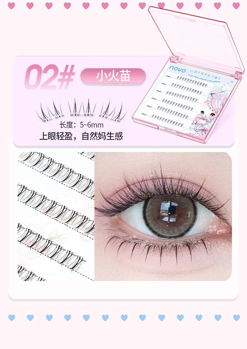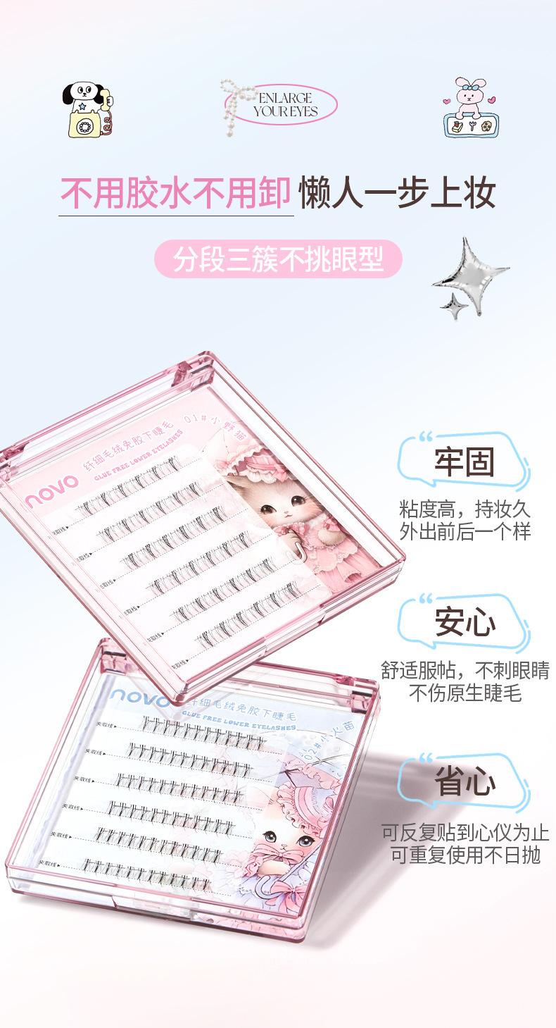 Compra Pestañas inferiores NOVO pequeñas sin pegamento, sin llama, naturales, de un solo grupo, segmentadas, de dibujos animados, para principiantes al por mayor en Joom.pro