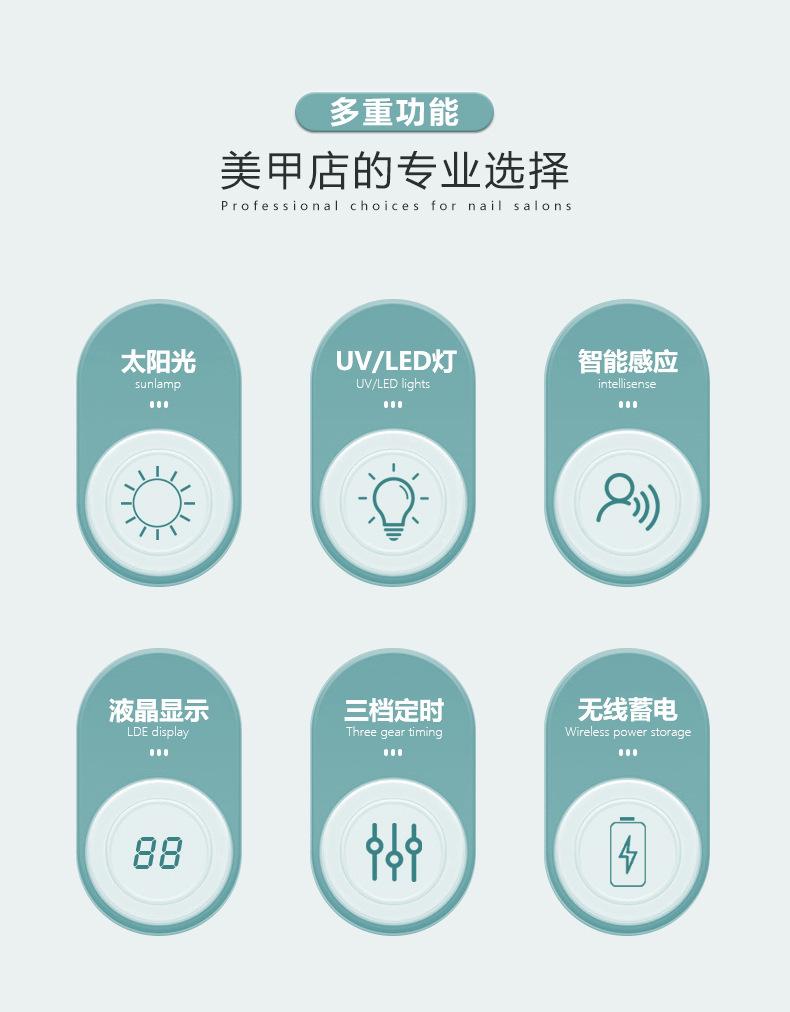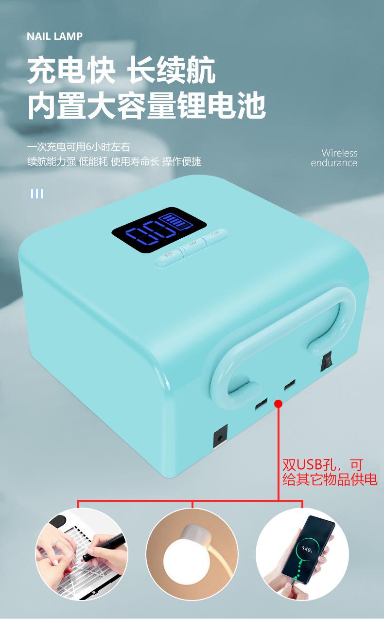 Nueva máquina de fototerapia de uñas con almacenamiento de energía inalámbrico transfronterizo de 220 W, máquina de fototerapia para salón de uñas de secado rápido y alta potencia.