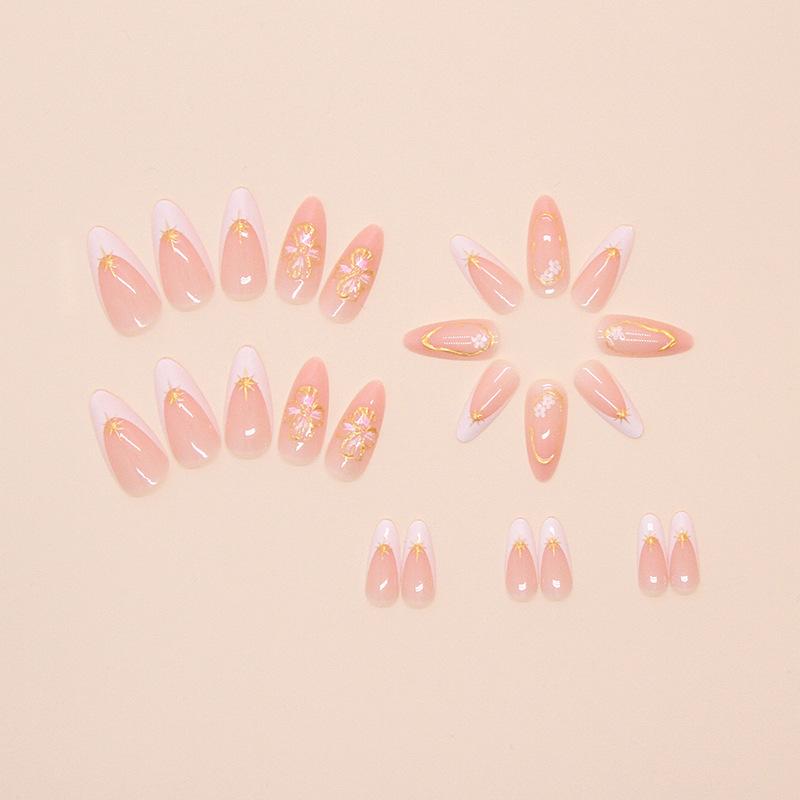 Parche de decoración de uñas simple, extraíble, francés, falso, estéreo, flor, piezas de arte de uñas, taladro, 24 piezas