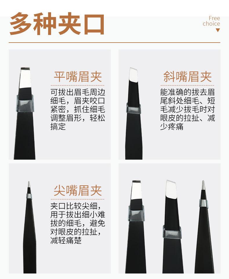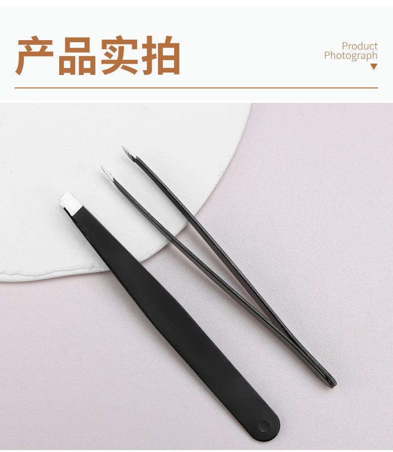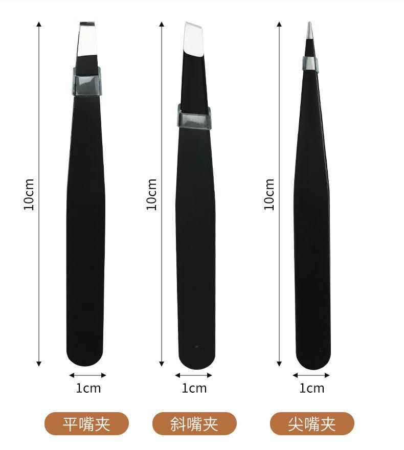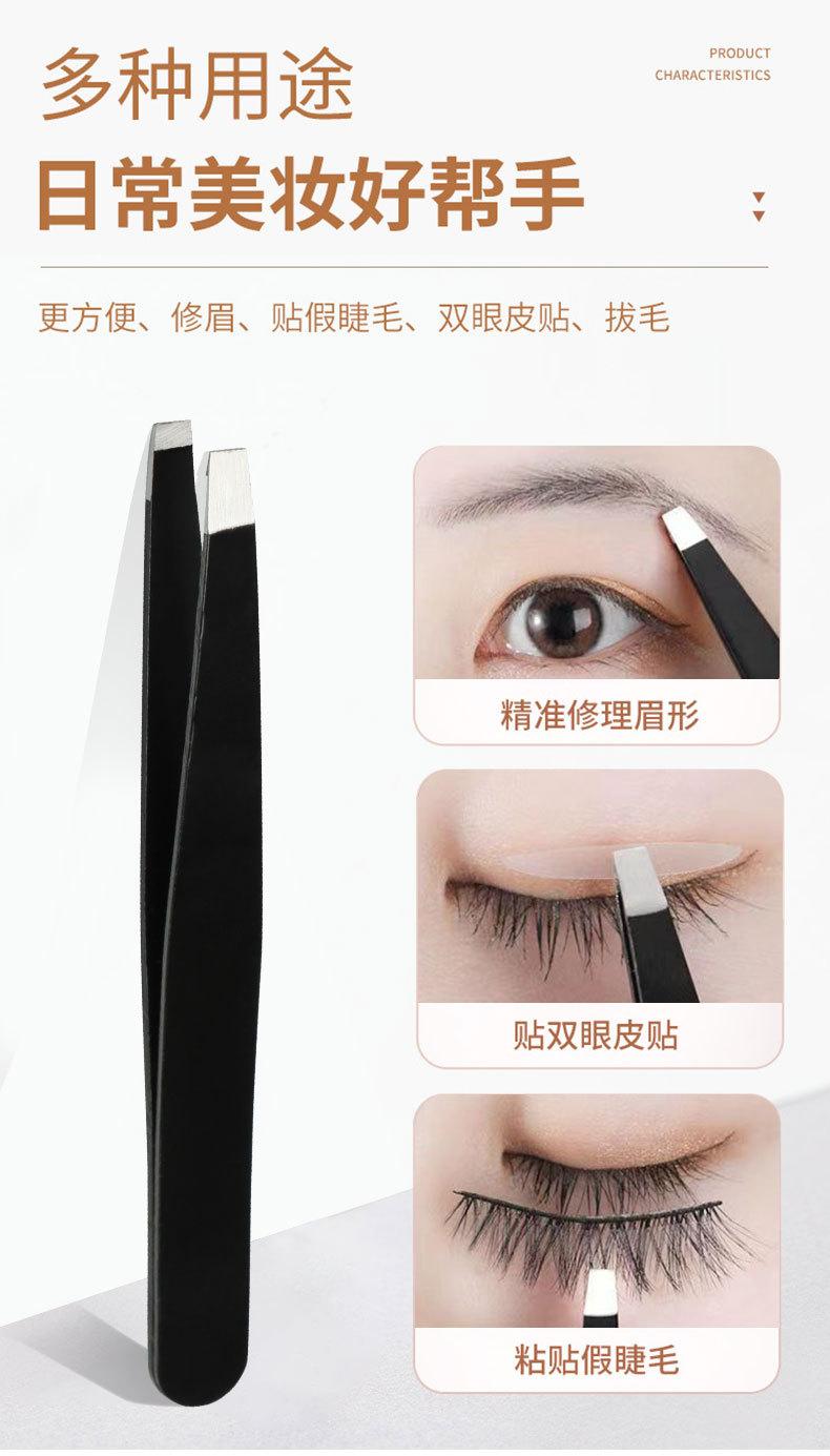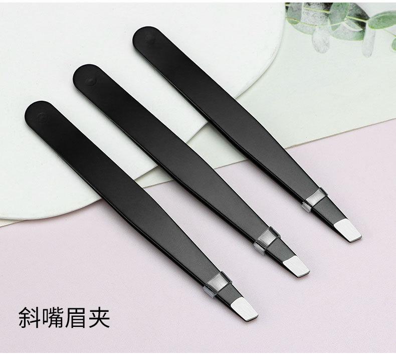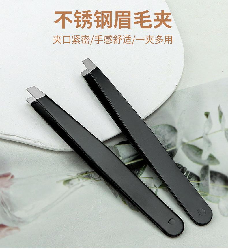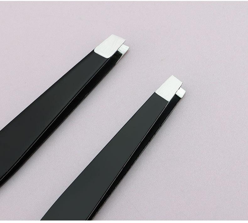 Fábrica en stock herramientas de belleza boca plana inclinada acero inoxidable clip de cejas negro pinzas para depilar cejas rizador de pestañas