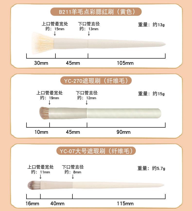 Yc-07 cloud porcelain series large concealer brush, Yc-09 cloud porcelain series medium concealer brush, Yc-15...