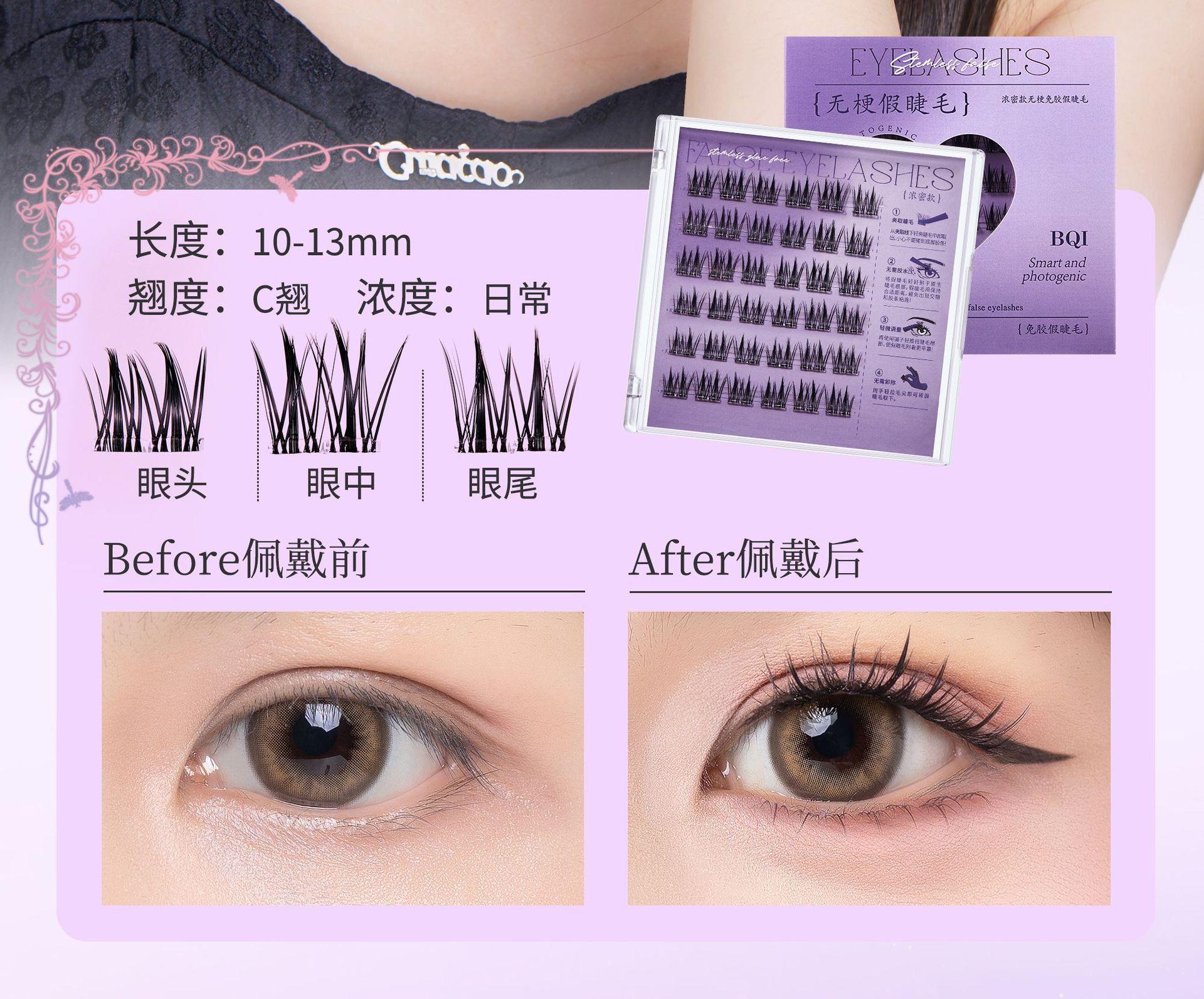Pestañas Postizas de Girasol BQI Sin Pegamento Gruesas Rizadas Mamá Sexy Ojos de Dibujos Animados Naturales Segmentadas