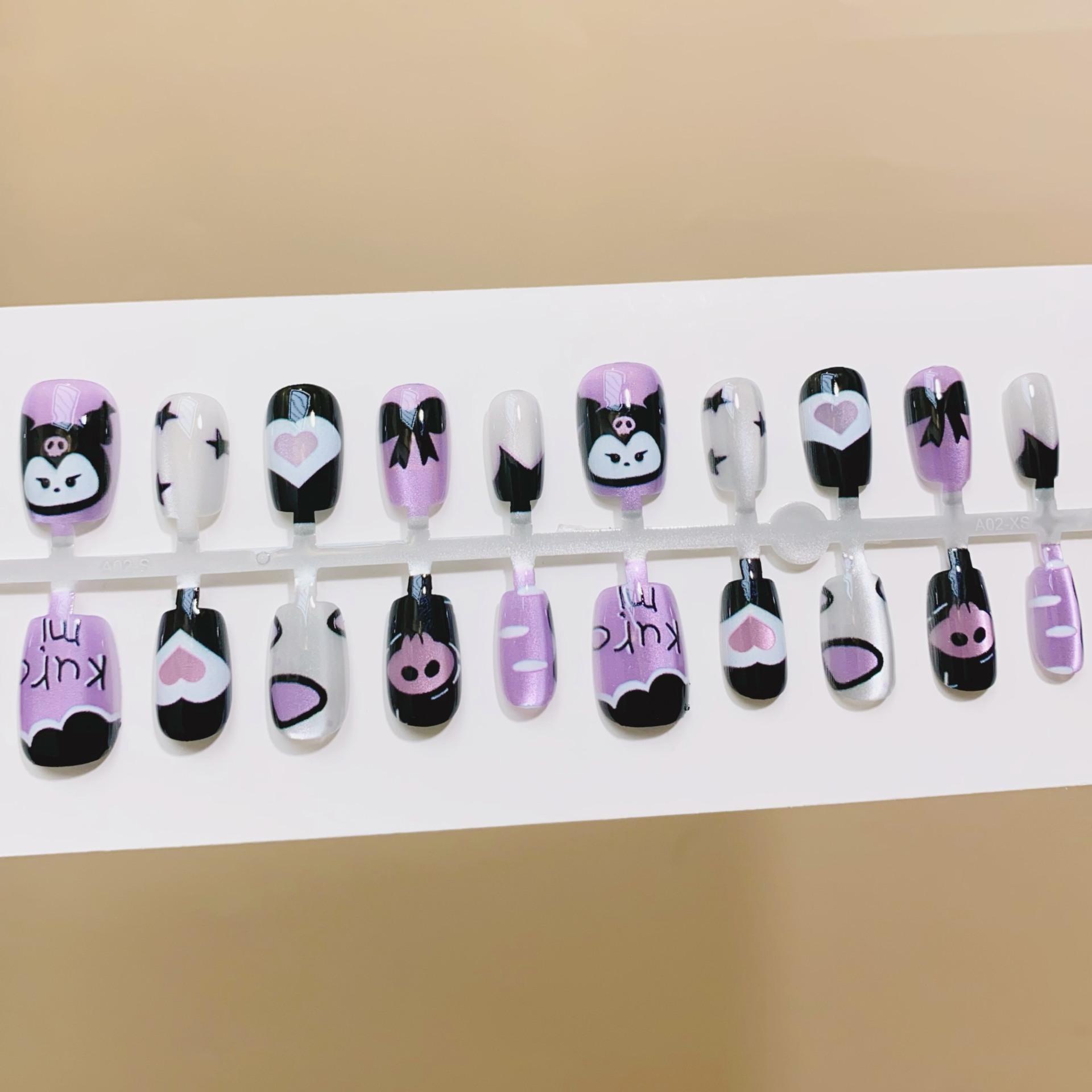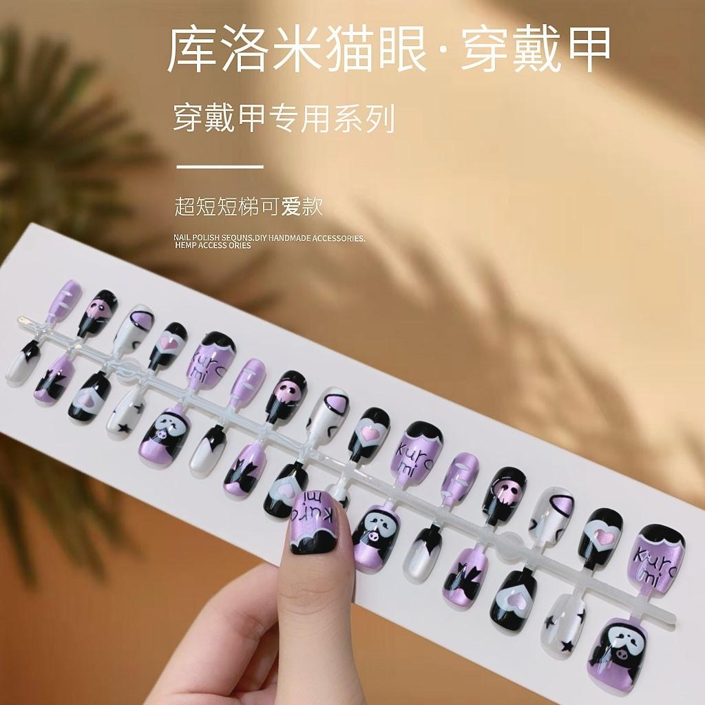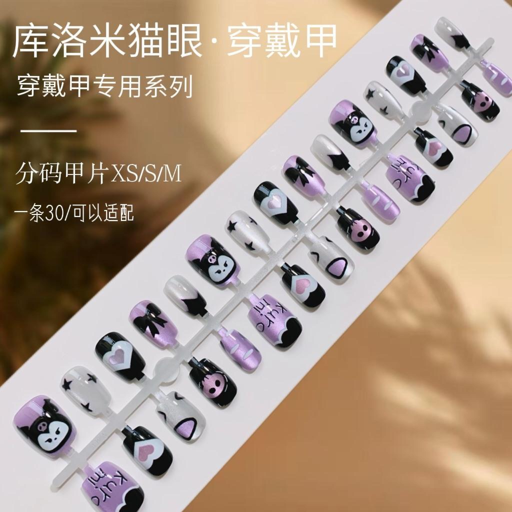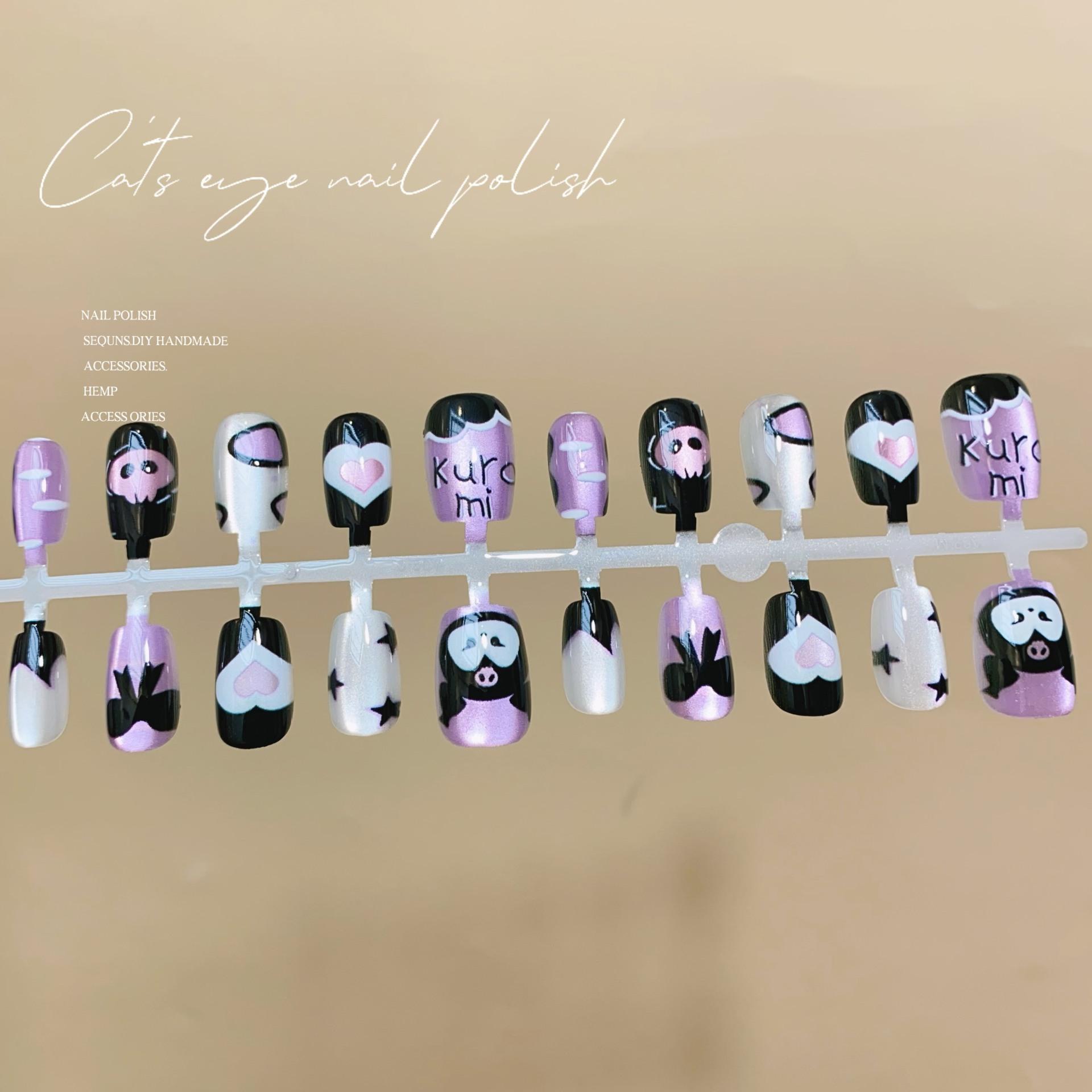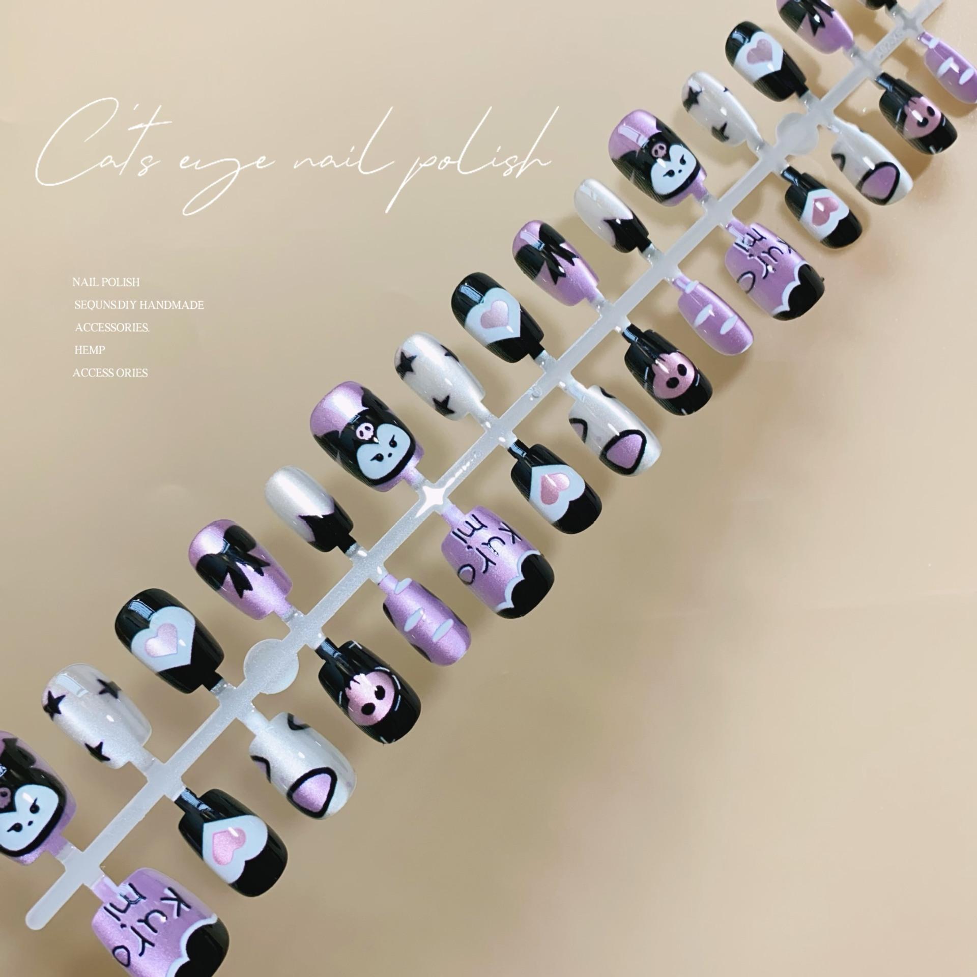 Arte de uñas de dibujos animados nuevo kulomi ojo de gato usar uña dopamina dulce genial oscuro uña postiza pieza de uña acabada al por mayor