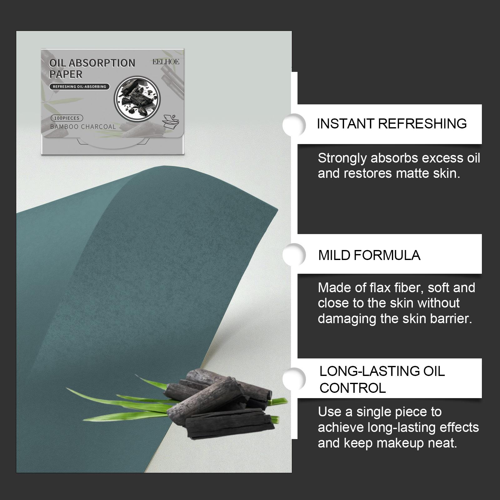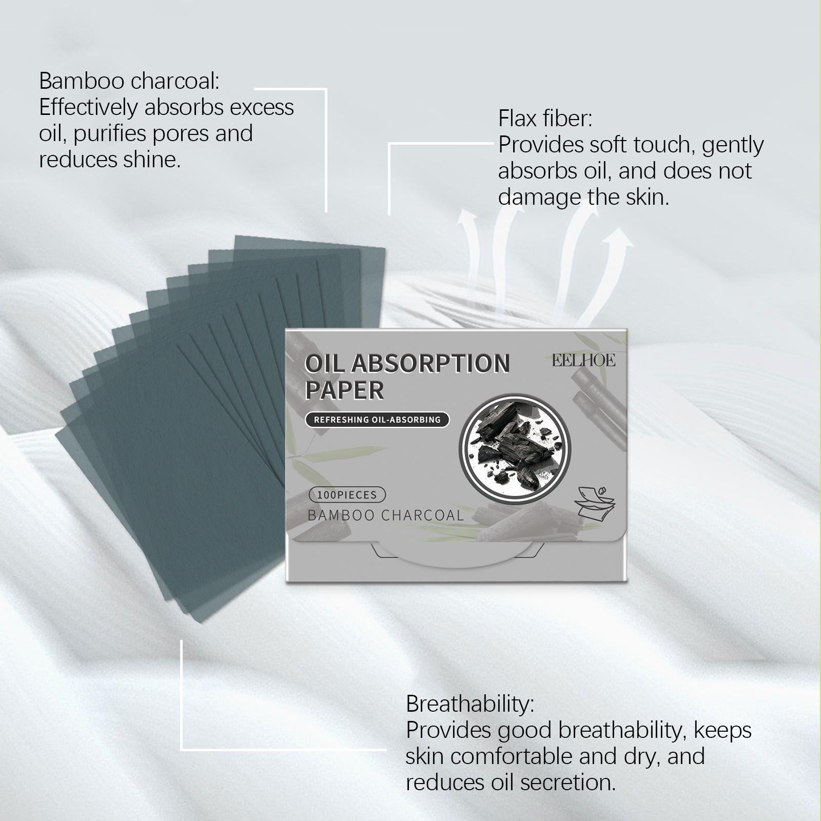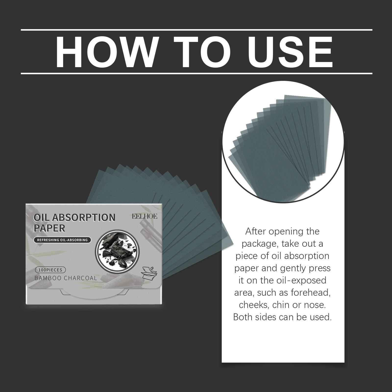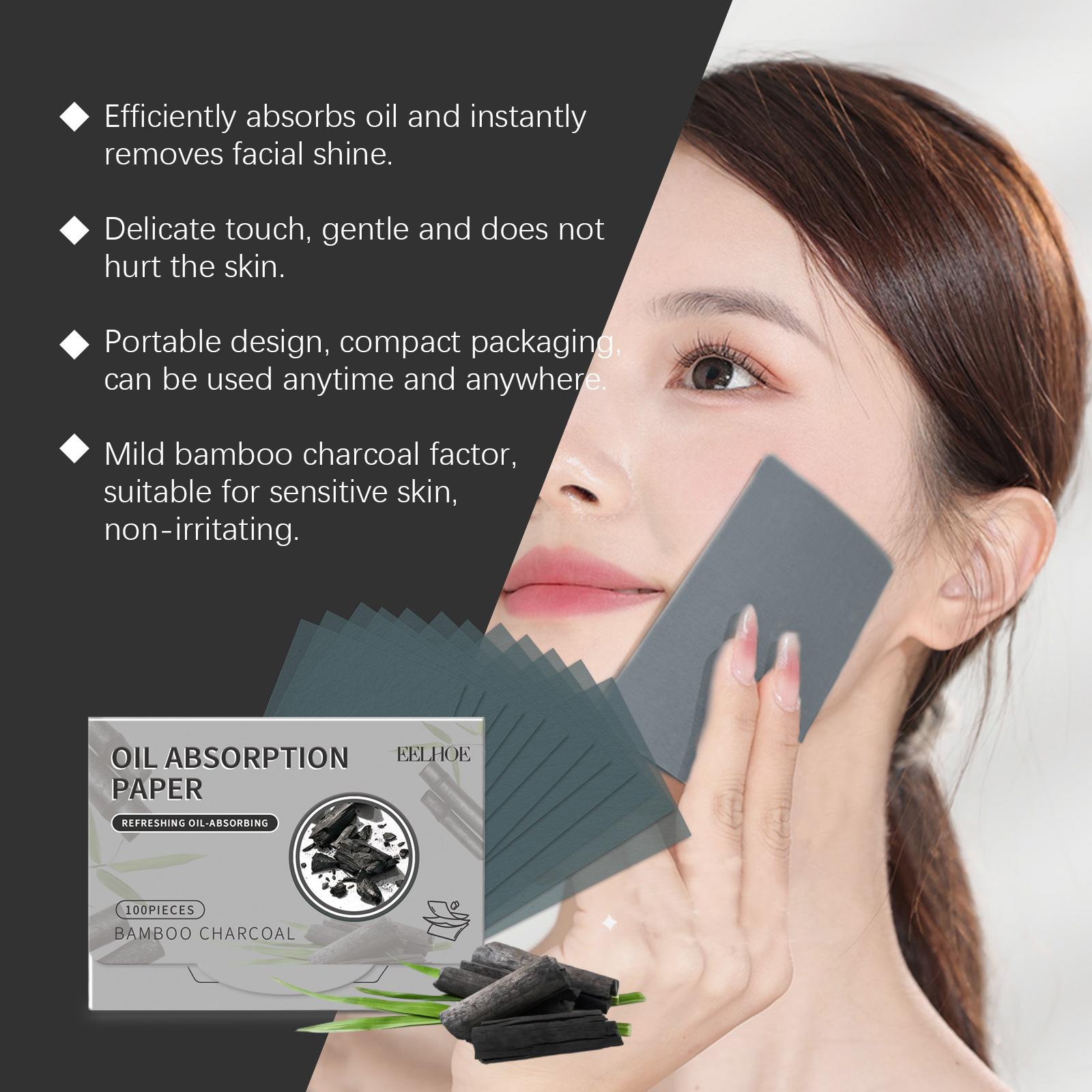 Papel absorbente de aceite de carbón de bambú EELHOE Clean and Cool Papel absorbente de aceite facial Maquillaje refrescante Papel absorbente de aceite portátil