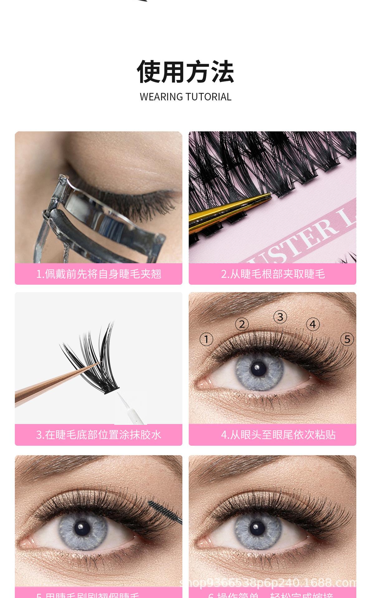 Pestañas postizas segmentadas para comercio exterior transfronterizo explosión DIY racimo individual cabello rizado naturalmente grueso pestañas postizas europeas y americanas