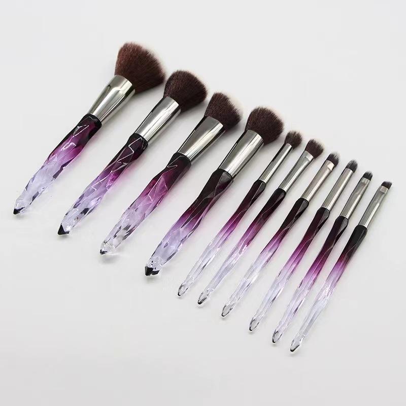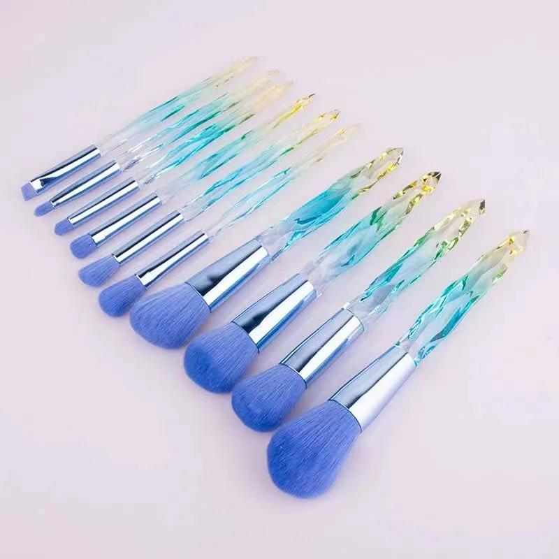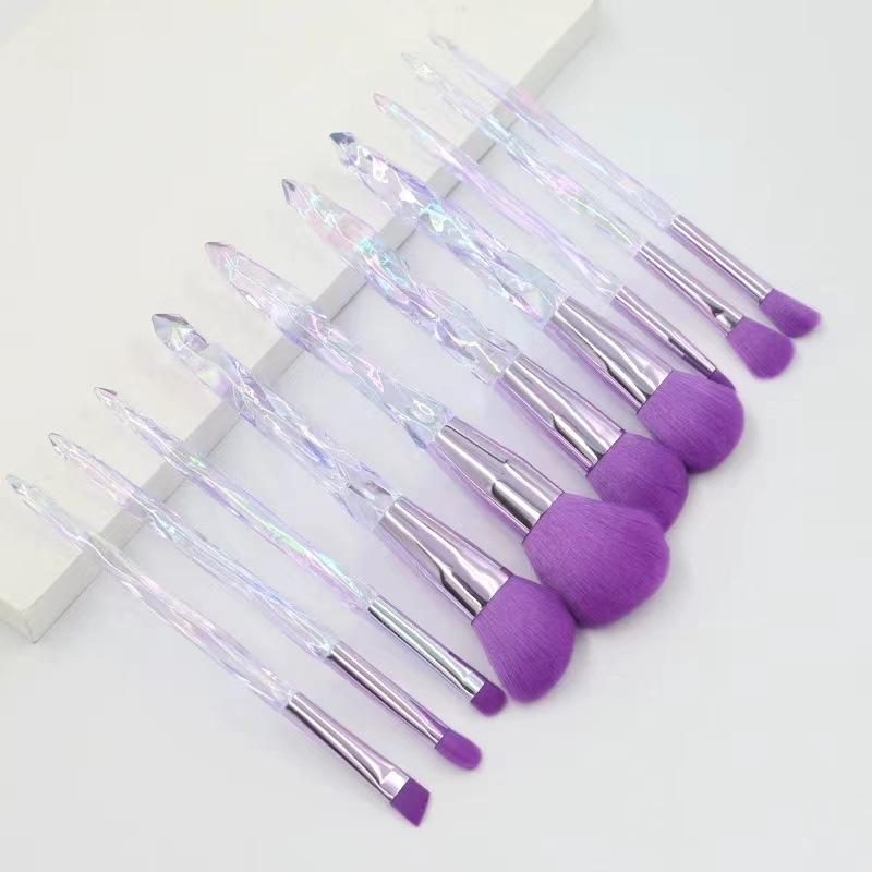 Juego de 10 brochas de maquillaje Diamond Star Mango de plástico Juego de brochas para polvo Brocha para polvo Sombra de ojos Brocha para base de ojos