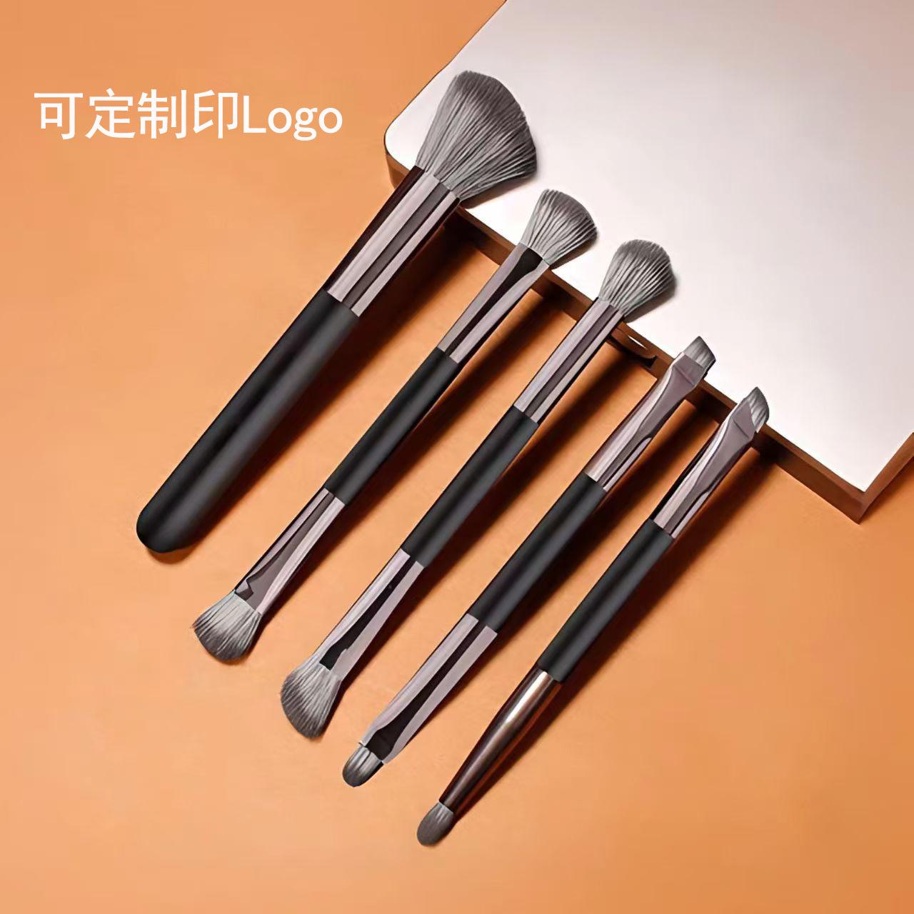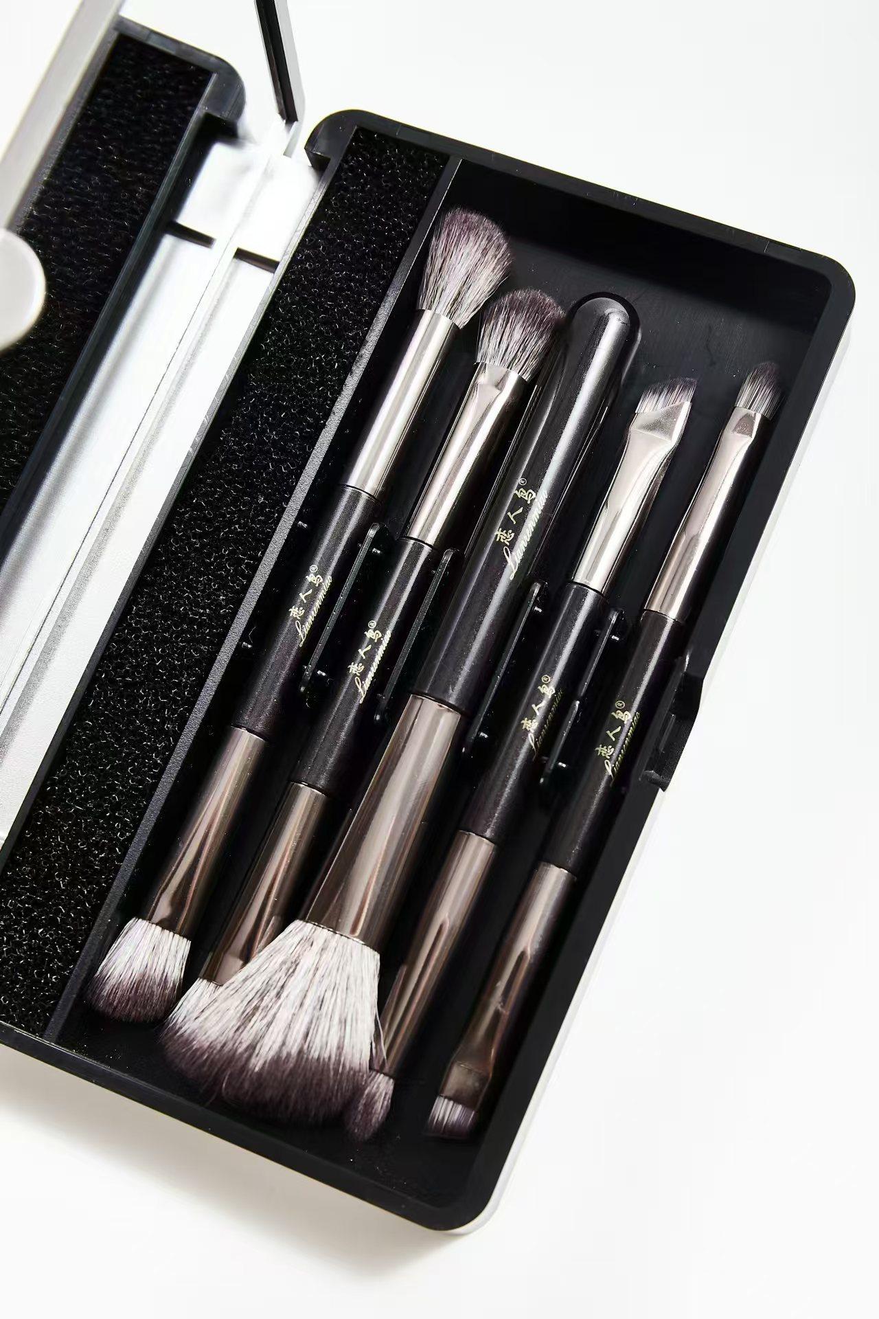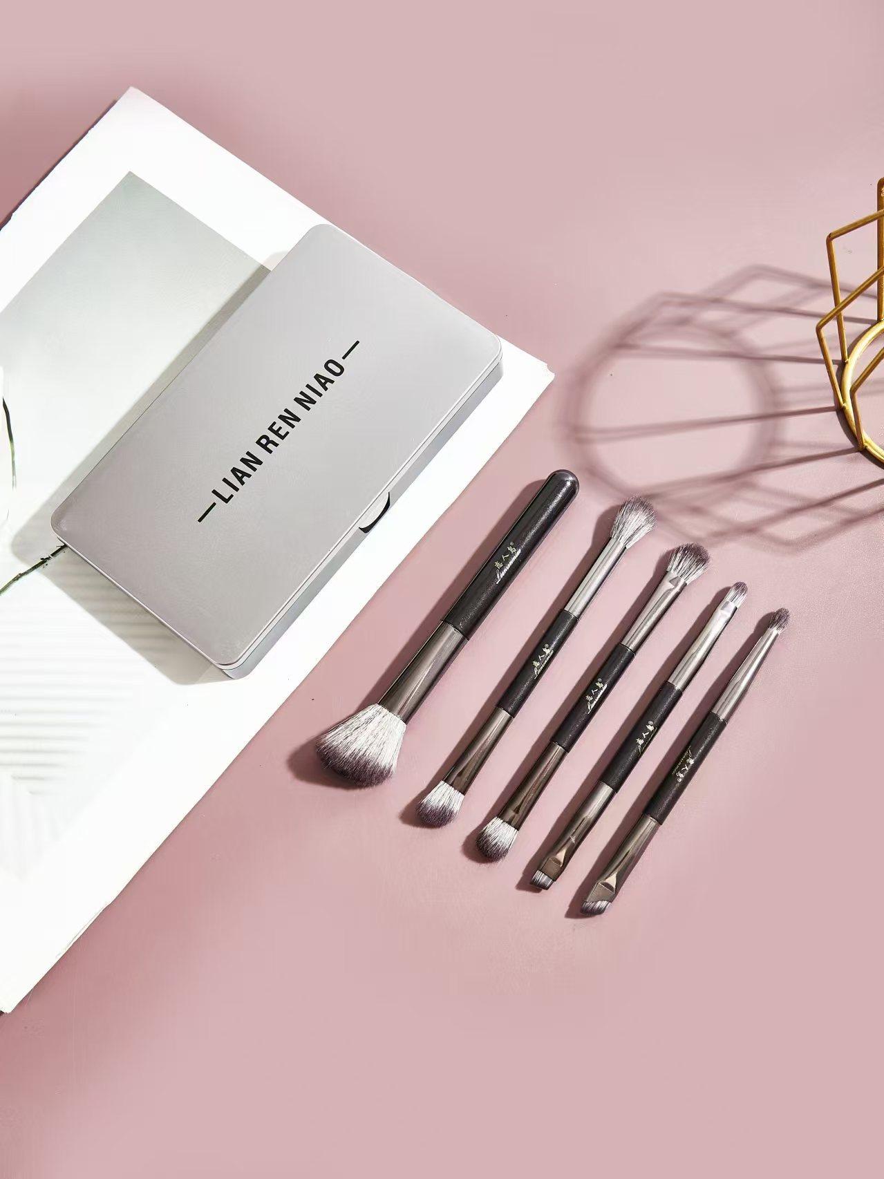 Little Sparrow Pincel de Sombra de Ojos de Doble Punta Juego de 5 Pinceles de Maquillaje para Ojos Pincel de Maquillaje Portátil con Espejo Herramienta de Belleza
