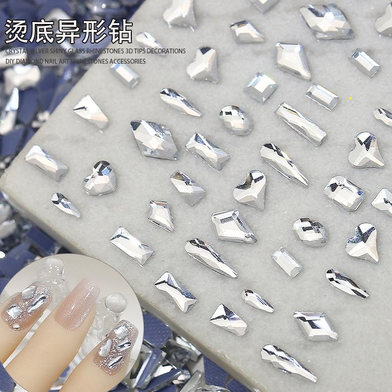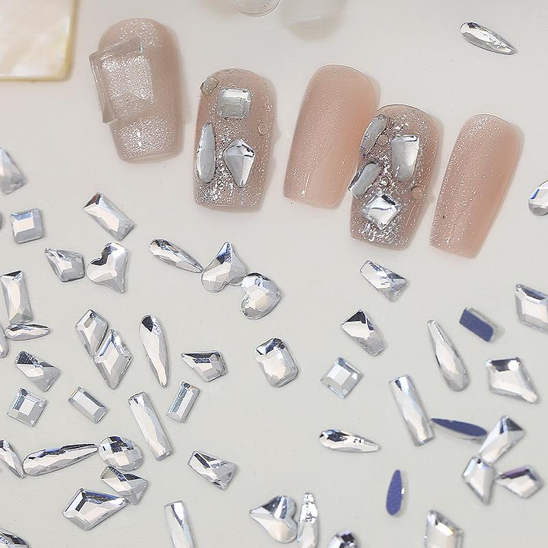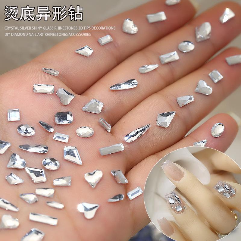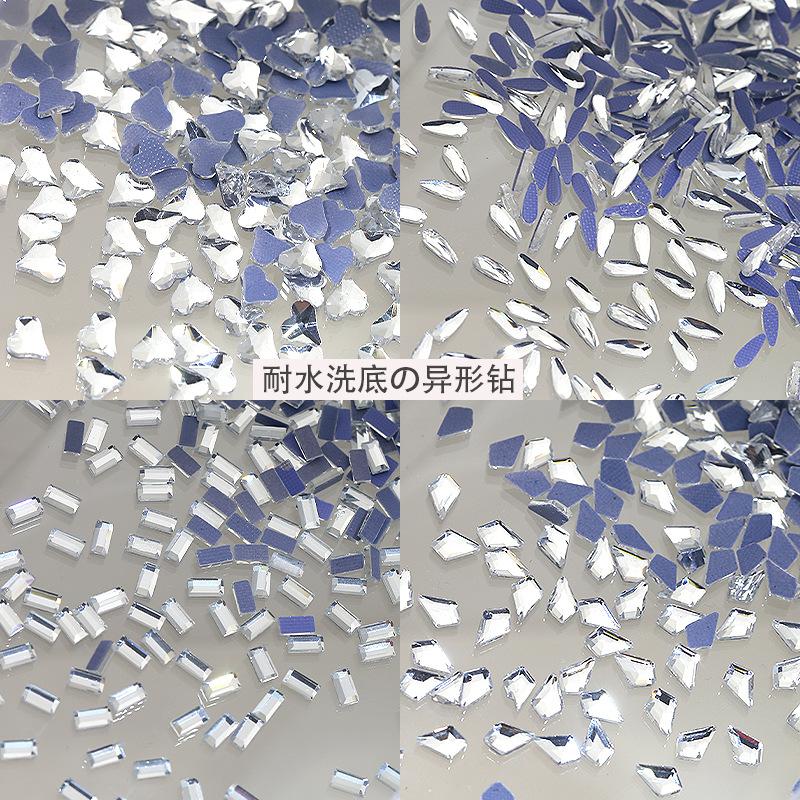 Taladro de uñas con fondo blanco caliente, con forma de gota de agua de diamante de amor, rejilla lavable, fondo plano, joyería de uñas con forma de diamante, venta al por mayor