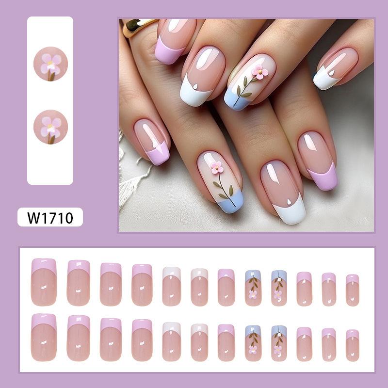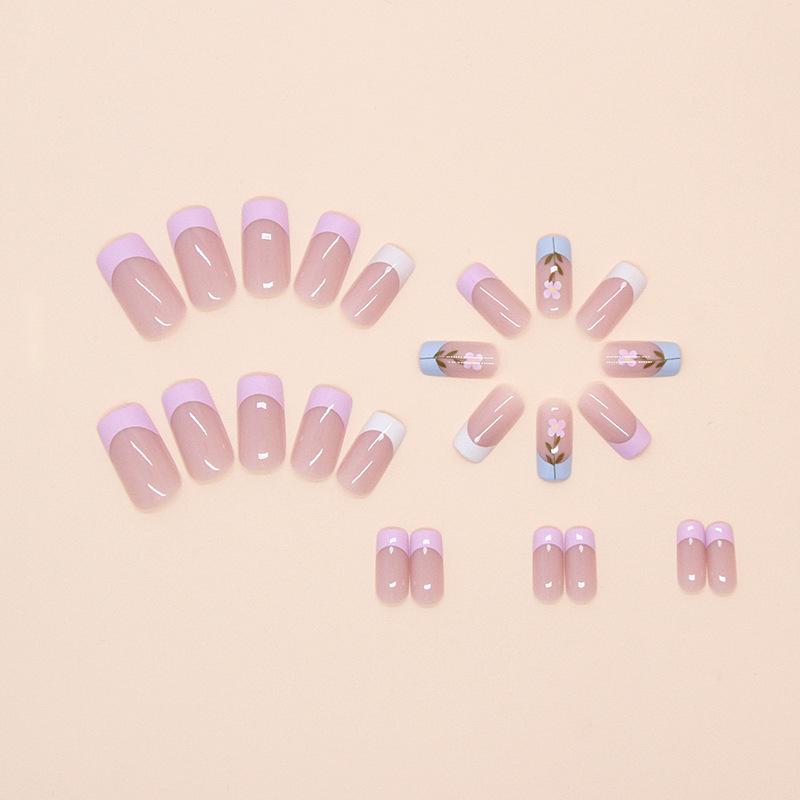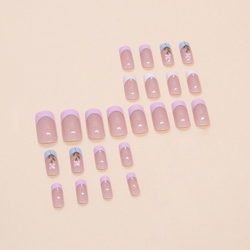 Comercio Exterior - Uñas francesas sencillas con armadura extraíble, parche de flores frescas para uñas postizas, uñas cortas, 24 piezas
