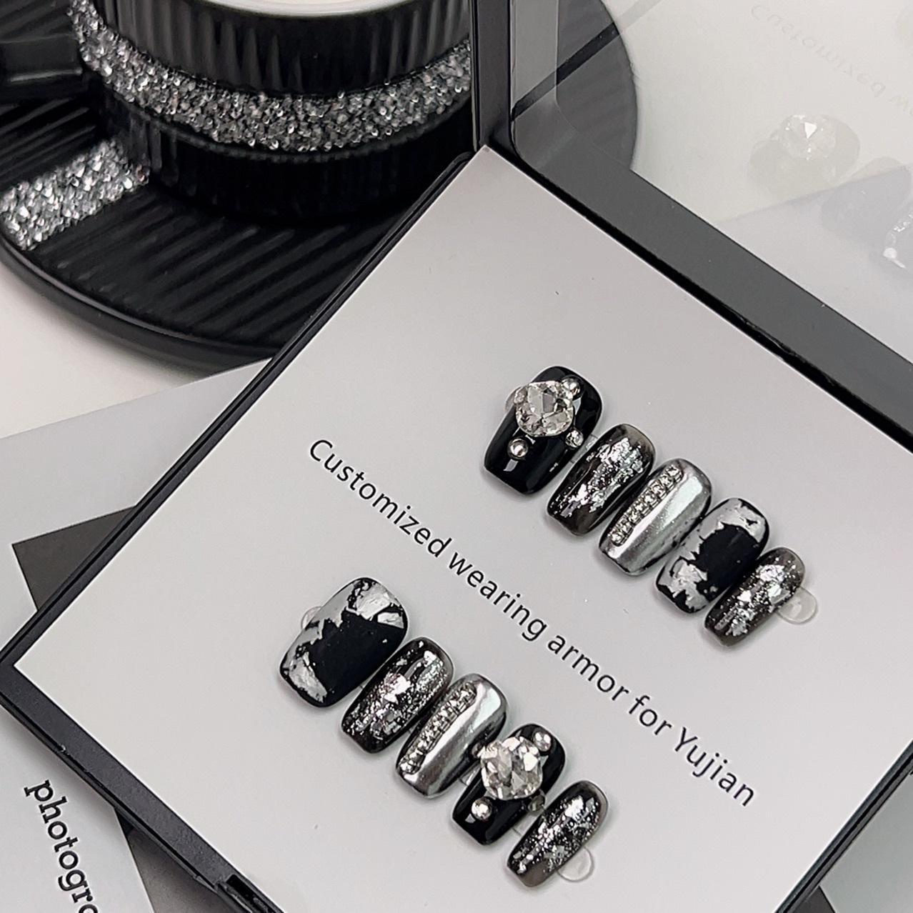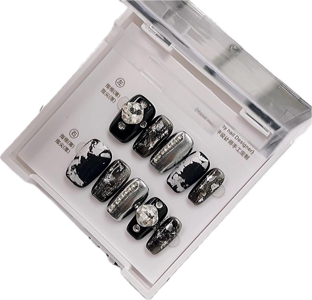 2024 Armadura de Mano Pura Lujo Ligero Alto Nivel Arte de Uñas Mate Huevo de Paloma Diamante Cara Blanco Oscuro Uñas Postizas