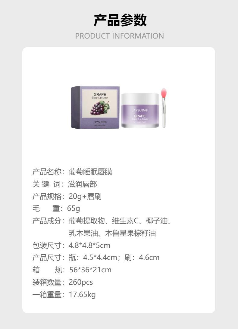 Grape lip mask 20g (only for foreign trade export sales, domestic sales are prohibited, purchase is equivalent to a default disclaimer)