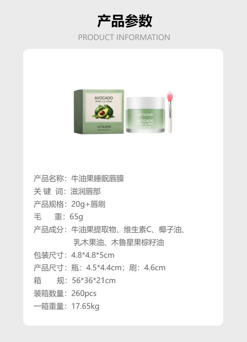 Avocado lip mask 20g (only for foreign trade export sales, domestic sales are prohibited, purchase is equivalent to a default disclaimer)