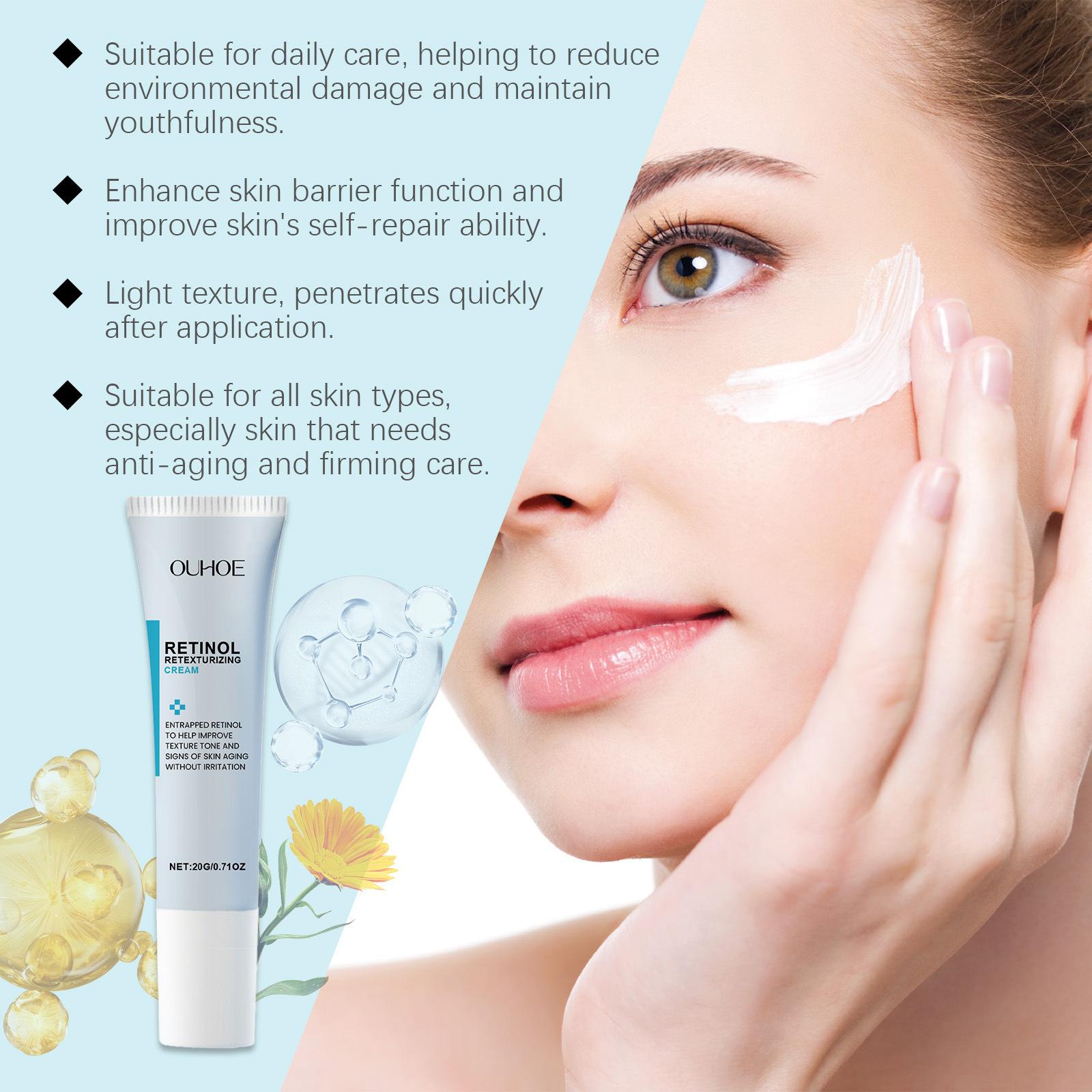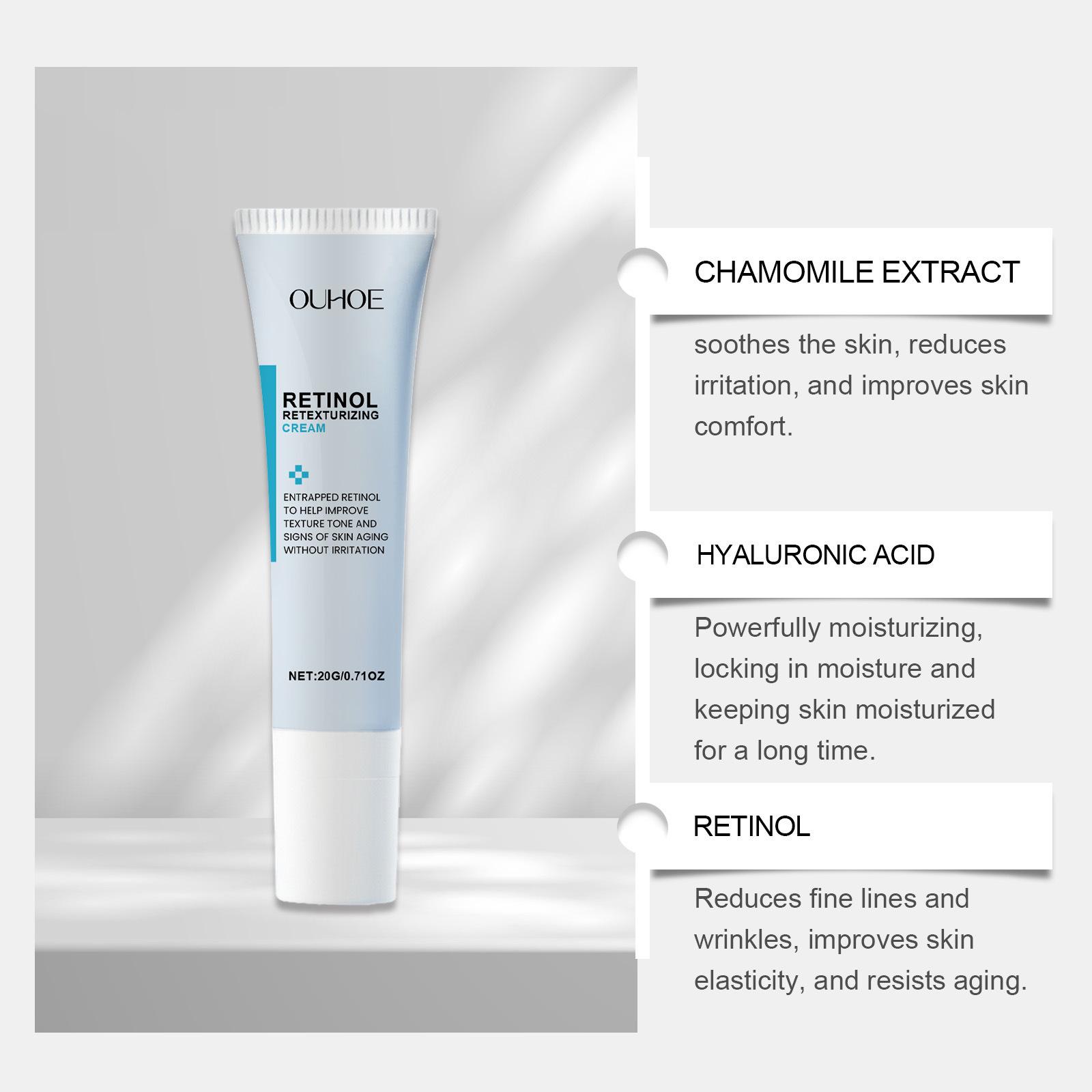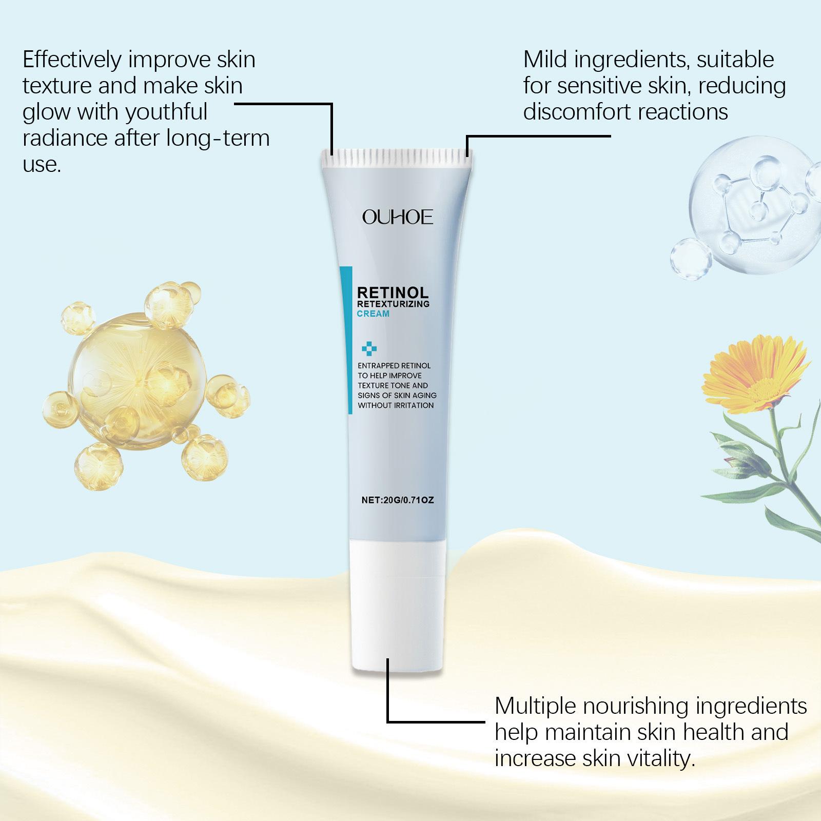 La Crema de Retinol Transfronteriza Ouhoe es una crema facial suave y refrescante que hidrata e ilumina la piel, mejorando la opacidad.