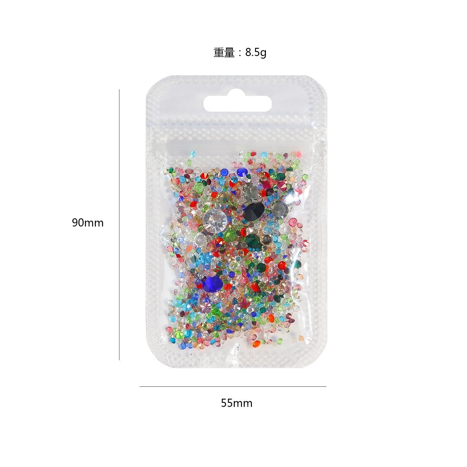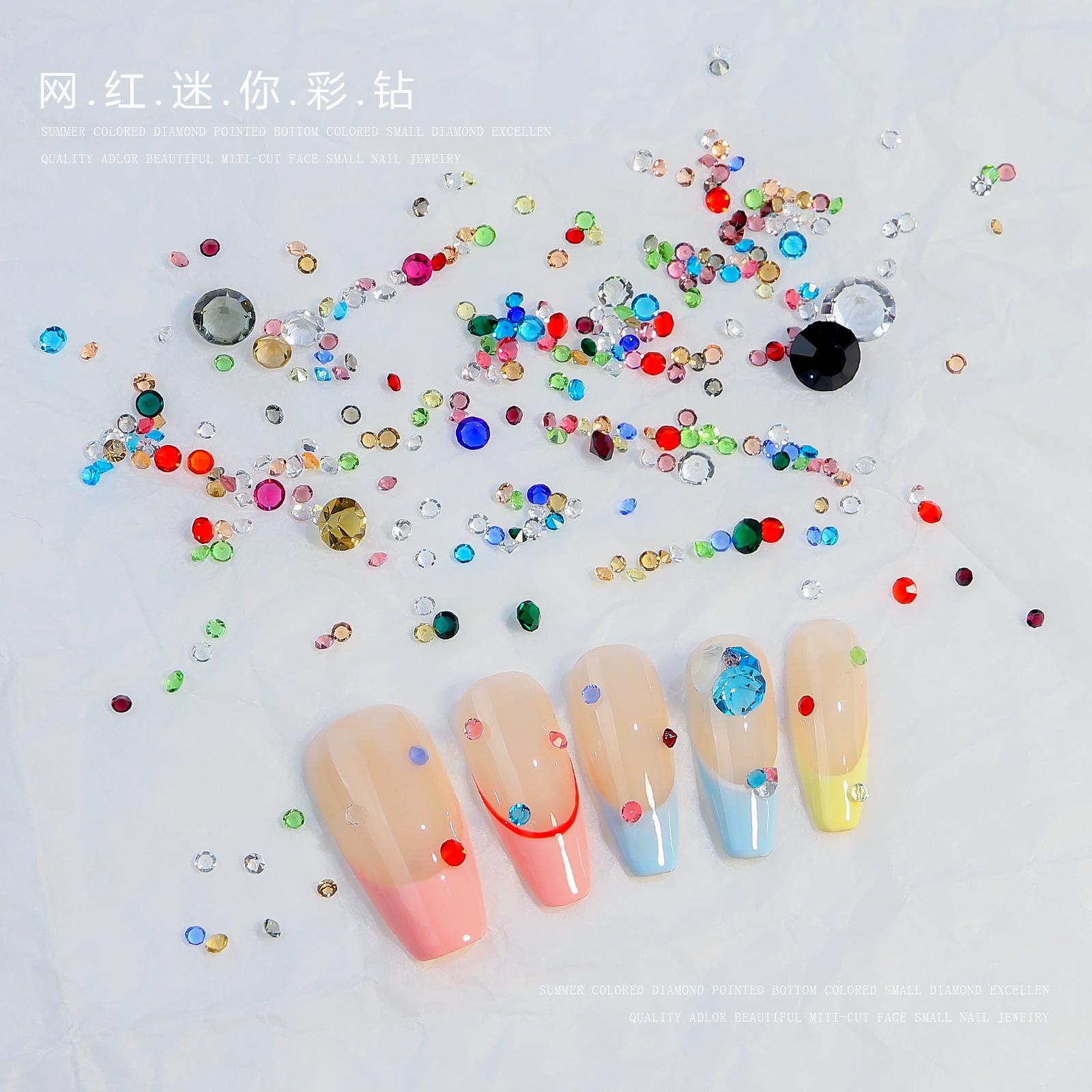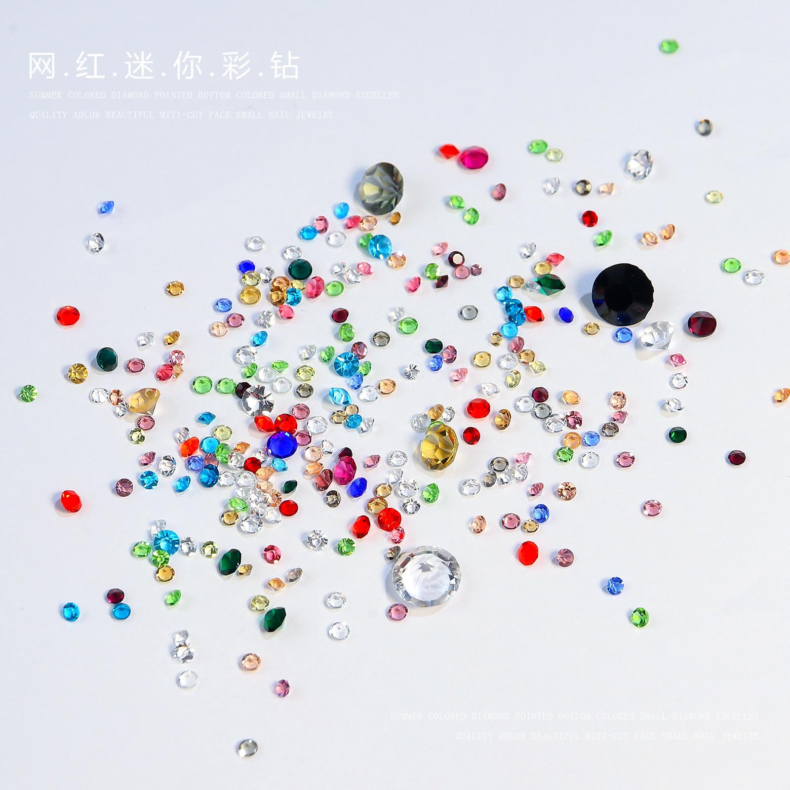 Bolsa de material de monito pequeño a través del fondo de la explosión del taladro de uñas color mixto punta inferior taladro de vidrio joyería para uñas mixto al por mayor
