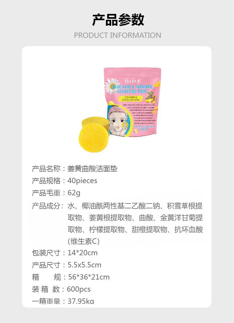 Compra EELHOE Almohadilla Limpiadora de Cúrcuma y Ácido Kójico Limpieza Suave Cuidado de la Piel Desvanecimiento del Acné Facial Iluminador y Poros Delicados al por mayor en Joom.pro